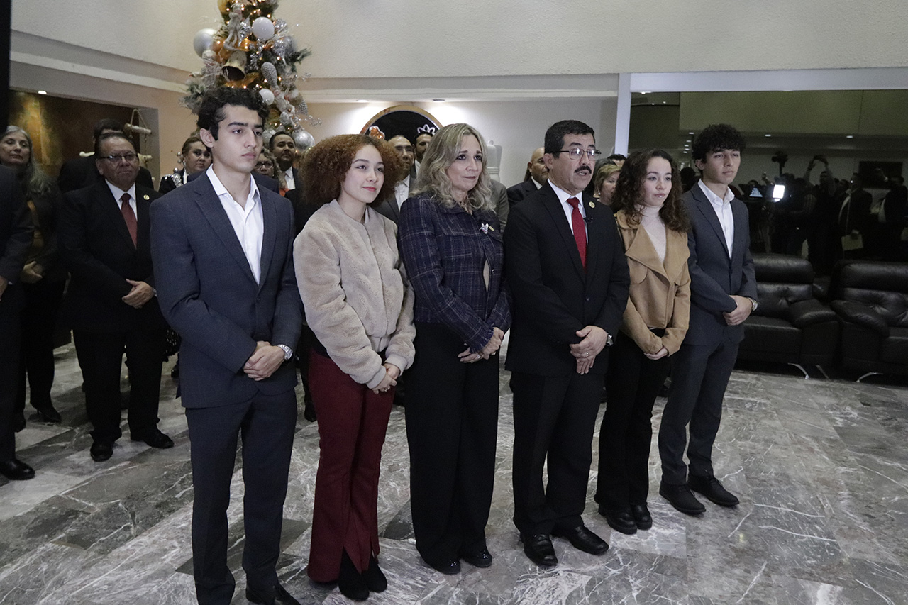 Concluyó su mensaje con los mejores augurios para el próximo año, deseando un próspero 2024 para toda la comunidad universitaria. "Muchas felicidades, Feliz Navidad", afirmó Dámaso Anaya Alvarado en nombre de la comunidad universitaria, su familia y en el suyo propio.