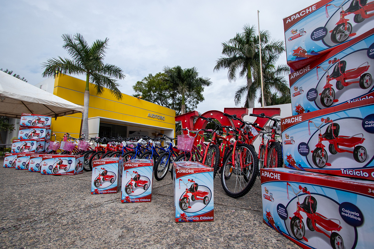 En representación del rector de la UAT, MVZ Dámaso Leonardo Anaya Alvarado, su esposa, la Lic. Isolda Rendón de Anaya, acudió a las instalaciones del Sistema DIF en esta capital, donde se llevó a cabo la entrega del generoso aporte que consiste en veinte triciclos y treinta y dos bicicletas destinadas a proporcionar movilidad y a servir como herramientas de recreación y desarrollo físico para quienes más lo necesitan.