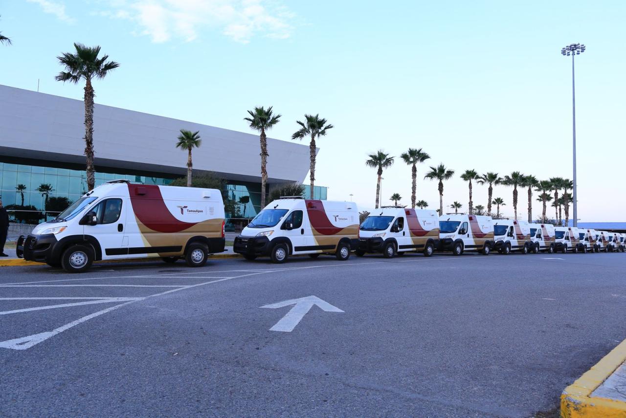 Al término de la ceremonia celebrada en el Polyforum de esta capital, el mandatario tamaulipeco, acompañado por integrantes del gabinete estatal, también hizo entrega de 10 patrullas para traslados en los Centros de Ejecución de Sanciones (Cedes) y dos ambulancias a la Coordinación Estatal de Protección Civil.