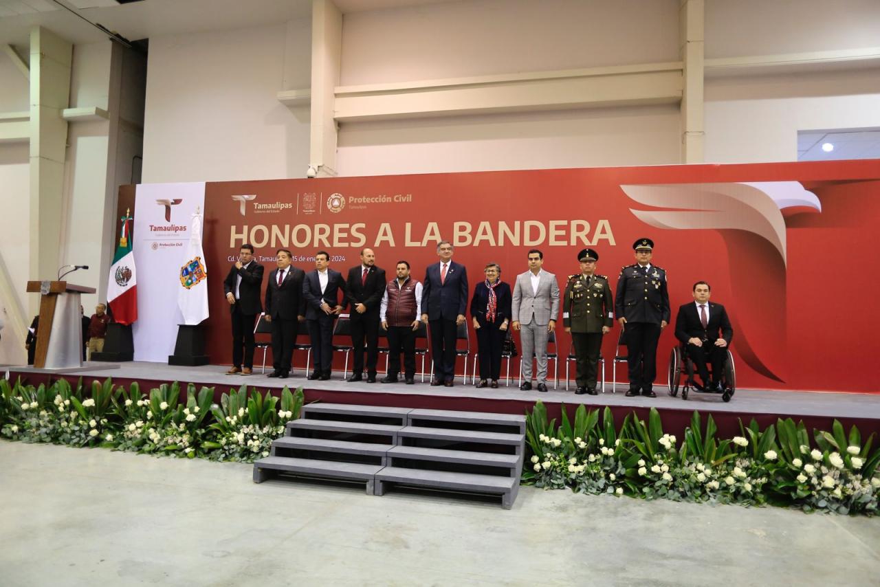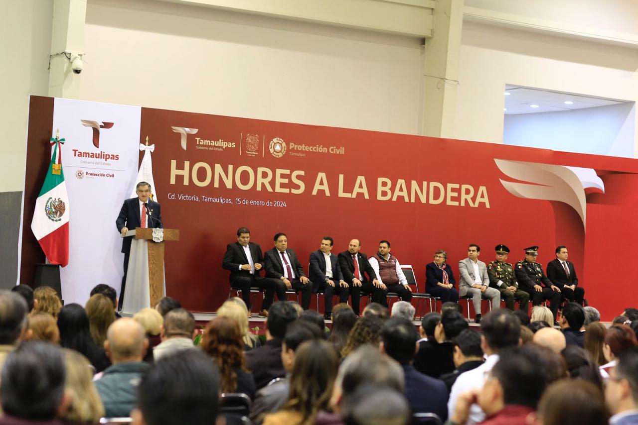 Ciudad Victoria, Tamaulipas.- En el marco de la ceremonia cívica de honores de este lunes, organizada por la Coordinación Estatal de Protección Civil, el gobernador Américo Villarreal Anaya hizo un llamado para estar atentos a la advertencia meteorológica por el descenso de la temperatura y pidió reforzar las medidas de prevención a fin de lograr, en la medida de lo posible, que se puedan mitigar los daños.