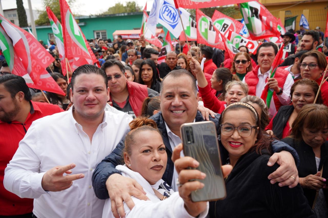 Cd. Victoria, Tam.- Un auténtico día de fiesta se vivió en el registro de Oscar Almaraz Smer como precandidato de la Coalición Fuerza y Corazón por Tamaulipas a la alcaldía victorense.