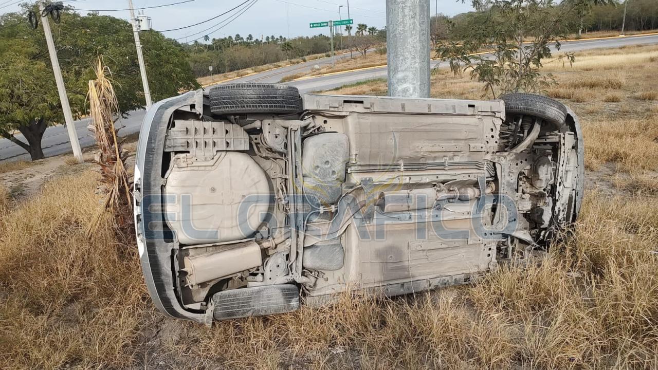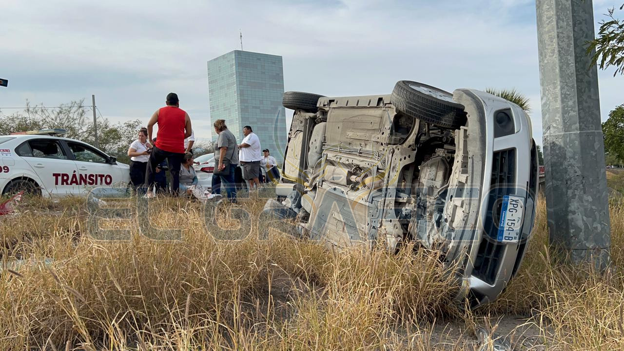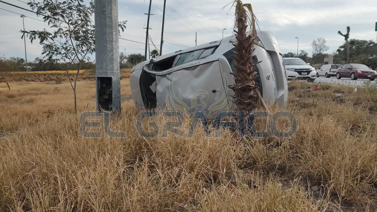 Por circular a exceso de velocidad, una joven conductora a bordo de un automóvil Nissan protagonizó una aparatosa salida de camino con volcadura a la altura del Planetario.