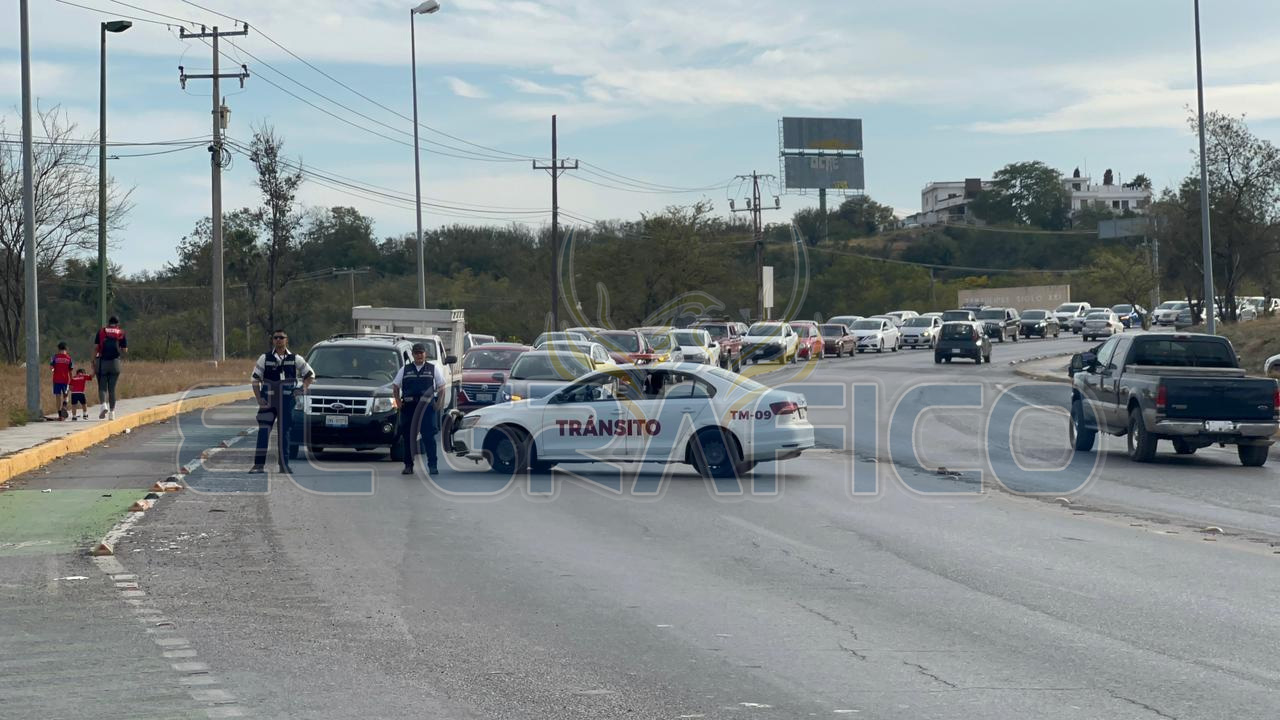 El accidente que dejó cuantiosos daños materiales ocurrió cuando el vehículo Nissan Versa con placas de Tamaulipas circulaba en sentido de sur a norte por el bulevar Fidel Velázquez.