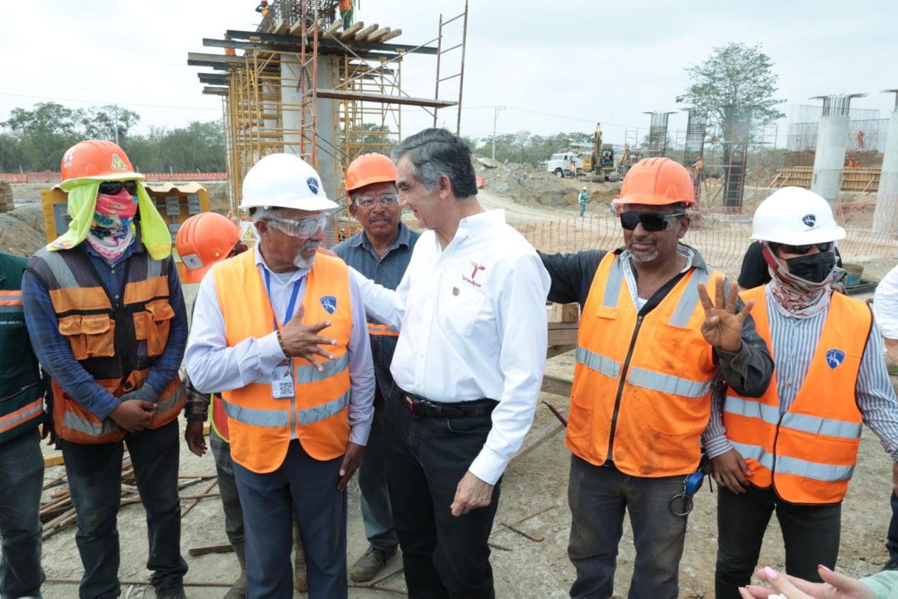 Altamira, Tamaulipas.- Al constatar el avance del 70 por ciento que registra la construcción del nuevo “Puente de la Esperanza" y tras ser informado que se concluirá en el mes de abril, el gobernador Américo Villarreal Anaya aseguró que esta obra es un ejemplo de lo que se puede lograr cuando los recursos públicos se manejan con honestidad.
