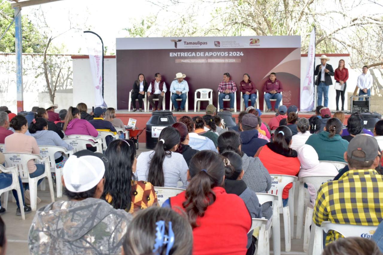 Durante el evento se contó con la presencia de Rocío Adriana Acevedo Ordoñez, delegada regional de Bienestar; Luz María García Olvera, enlace del DIF Estatal; Ángel Landeros Esquivel, coordinador jurisdiccional de COEPRIS en Padilla y José Luis Méndez Garza, director de Pymes Rurales, además de productores beneficiados.