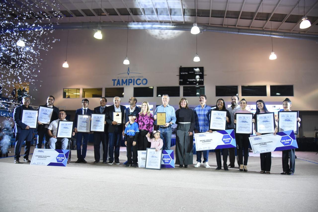 El Presidente municipal Chucho Nader encabezó este martes, en el Polideportivo Tampico, la entrega del premio municipal del deporte a los atletas que más destacaron durante 2023 en las diferentes categorías y disciplinas.