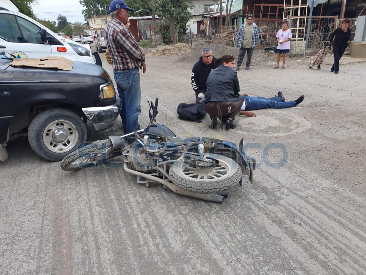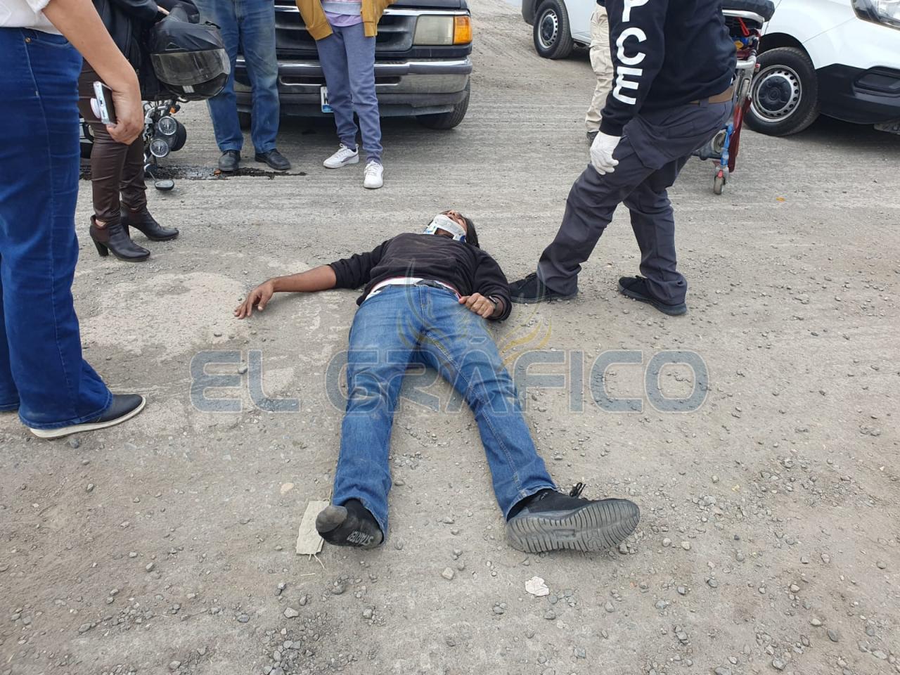Al no poder evitar el accidente el motociclista terminó por estrellarse contra la camioneta para posteriormente salir proyectado y caer al suelo.