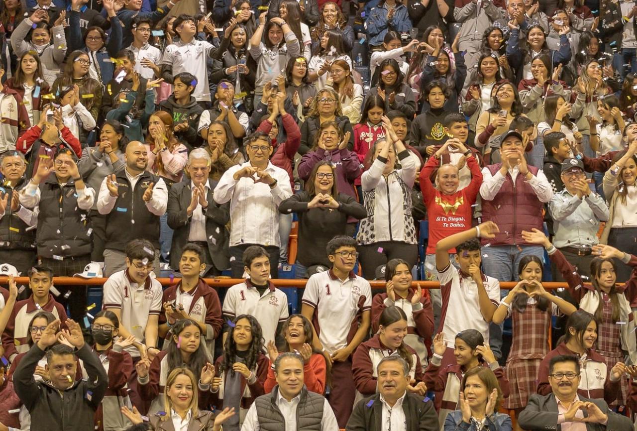 “Gracias maestras, maestros, madres y padres de familia por sumarse, por su compromiso docente y vocacional, ustedes son la piedra angular de la transformación, gracias por echar el resto, por su esfuerzo y preparación para informar a las y los estudiantes de secundaria y media superior”.