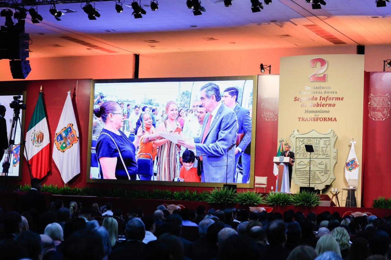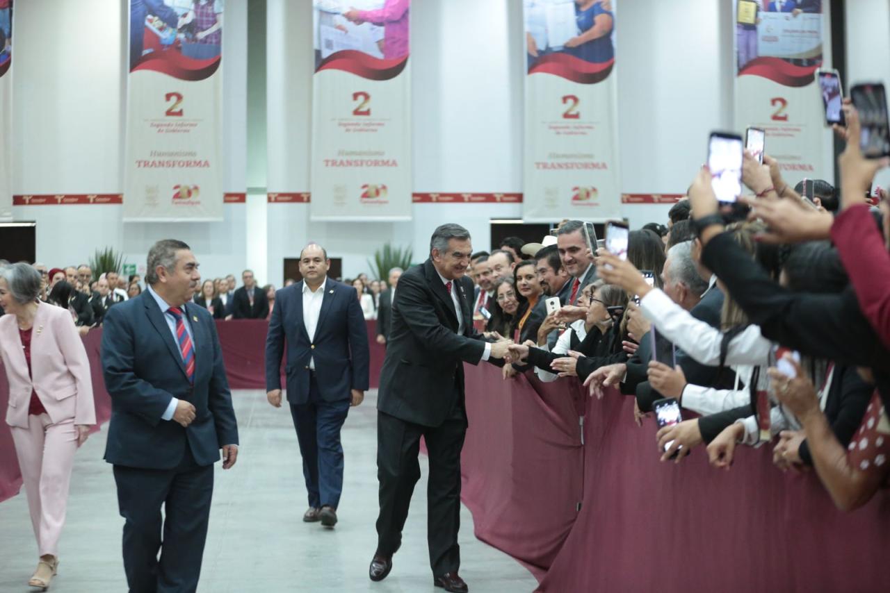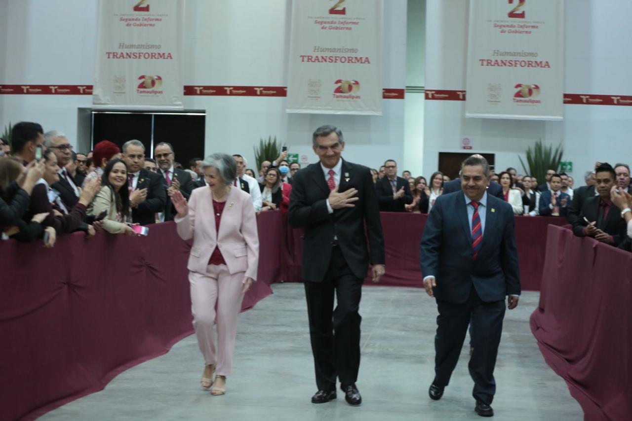 En su mensaje con motivo del Segundo Informe de Gobierno, en el Polyforum de Ciudad Victoria y acompañado por el secretario de Energía, Miguel Ángel Maciel Torres, representante del presidente de México, Andrés Manuel López Obrador, y de la presidenta del Sistema DIF Tamaulipas, María de Villarreal, el gobernador aseguró que un gobierno humanista debe contribuir al bienestar y al desarrollo social, basado en los valores de la verdad, la justicia y la honestidad.