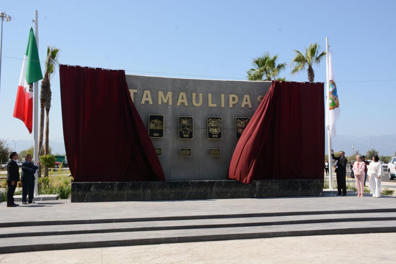 Contempla en sus costados dos astas banderas, con el emblema del Lábaro Patrio y el escudo del Estado de Tamaulipas y tiene una placa conmemorativa en alusión al acto cívico, donde refiere que, en el bicentenario del establecimiento de la República Mexicana, se exalta la grandeza del pueblo de Tamaulipas, desde su incorporación al Pacto Federal en 1824.