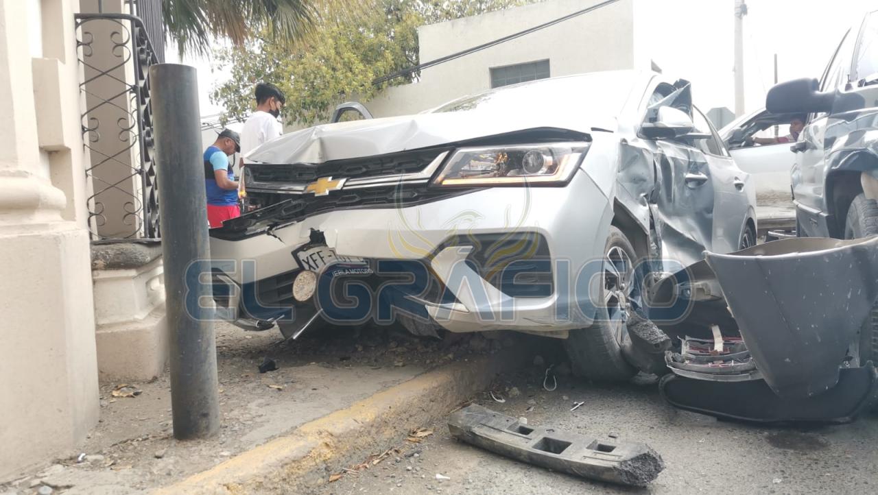 Al llegar al crucero con la calle 18 la conductora del Aveo ignoró un disco metálico de alto y el automóvil fue impactado por una camioneta de la marca Jeep tipo Cherokee.