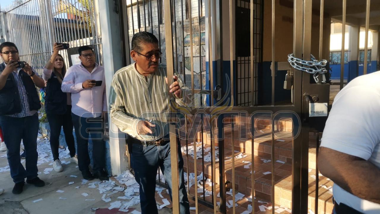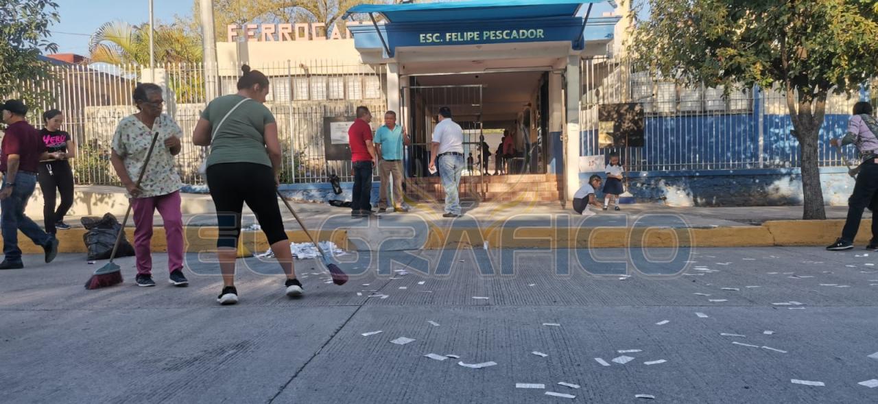 Además de cerrar la escuela que se encuentra en la calle 23 entre Hidalgo y Juárez, a un costado de la antigua Estación del Ferrocarril, los padres de familia tiraron en el exterior del plantel escolar una gran cantidad de papeles manifestando diversas inconformidades y denunciando al director de la escuela Juan Refugio Tagoada de acosar a madres de familia así como otras situaciones que ocurren al interior del plantel.