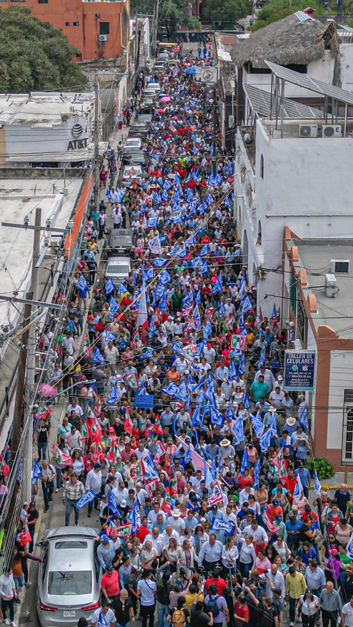 Cd. Victoria,Tam.- Este domingo miles de victorenses inundaron las calles del centro de la Capital, acompañando en su registro ante el Instituto Electoral de Tamaulipas (IETAM) a Oscar Almaraz Smer, Alejandra Cárdenas Castillejos y Miguel Mansur Pedraza.