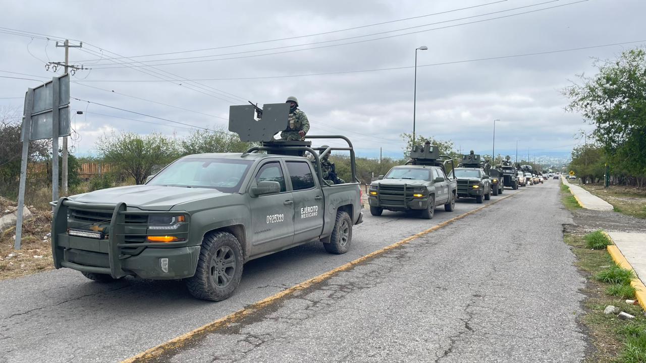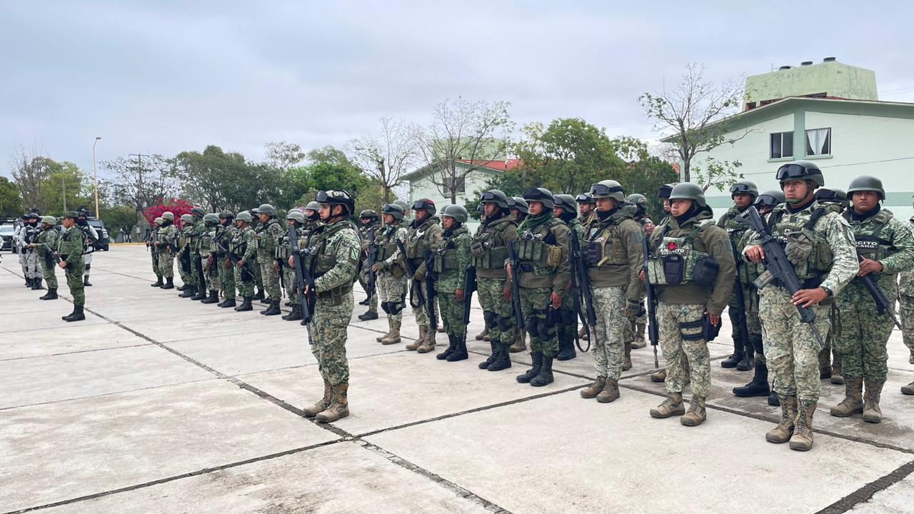 La 48/a. Zona Militar informó que con motivo del incremento de homicidios, actos delictivos y violencia en diversas colonias de esta ciudad, arribaron el día de hoy a esta plaza 300 efectivos de la Fuera de Tarea del Ejército Mexicano y Guardia Nacional.