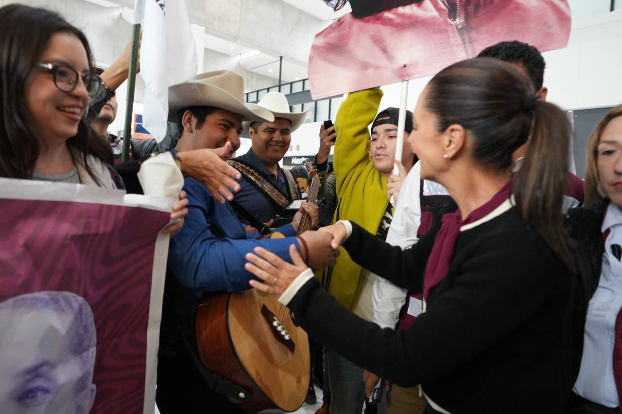 Fue entre el son de un tradicional hispano mexicano interpretado por un grupo local y en el que entre versos describen el momento histórico que vive México al tener la posibilidad de que una mujer de la transformación sea la primera Presidenta, que Claudia Sheinbaum recibió el apoyo y el cariño de mujeres y hombres entre abrazos, palabras de cariño y sonrisas
