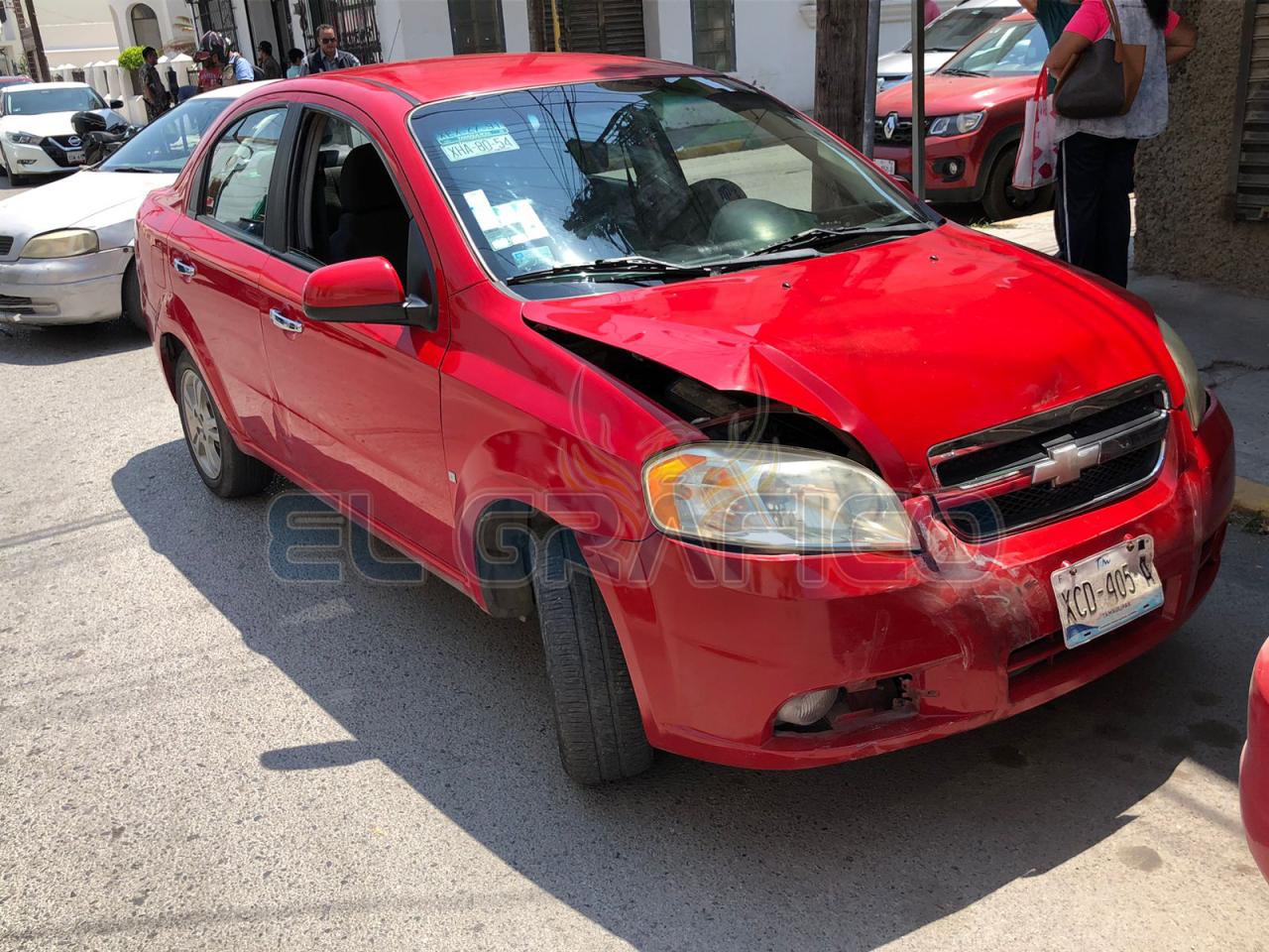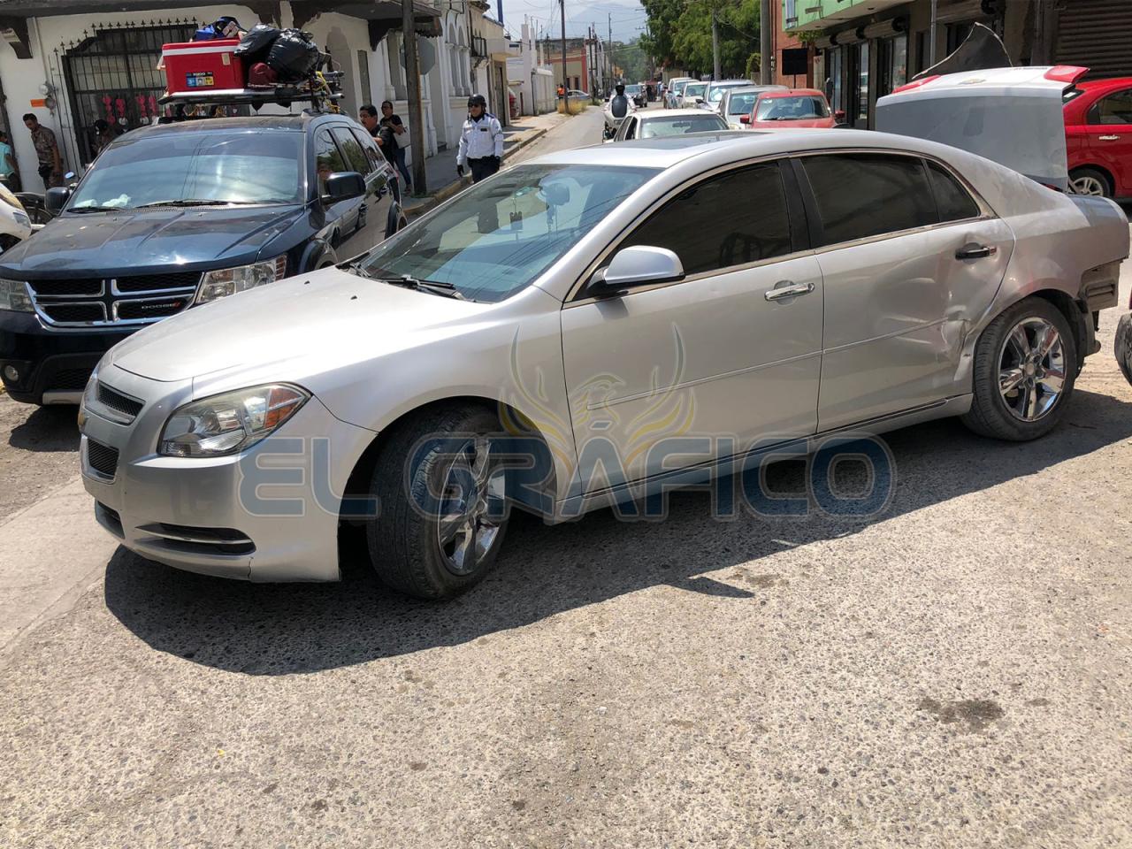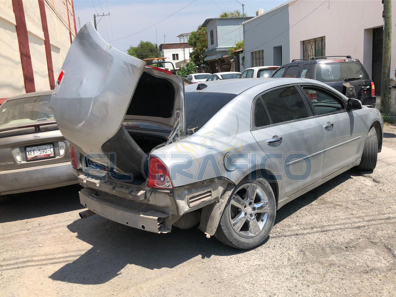 Tras ser impactado el Malibú dio un medio giro y al salir proyectado se estrelló contra la parte posterior de un automóvil de la marca Nissan tipo Sentra que estaba estacionado en la calle 12 entre Matamoros y Guerrero.