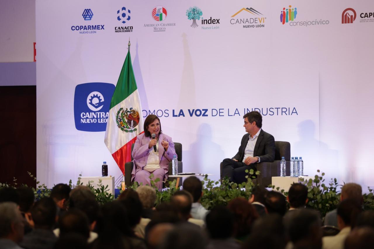 Monterrey, Nuevo León.- Xóchitl Gálvez Ruiz, candidata a la presidencia por la coalición Fuerza y Corazón por México, reitera su compromiso con la creación de un México atractivo para las inversiones, basado en el Estado de derecho, certidumbre jurídica, la seguridad pública, la salud, el empleo y la educación. Durante un diálogo con empresarios, enfatizó la necesidad de un nuevo modelo de negocio en Pemex.