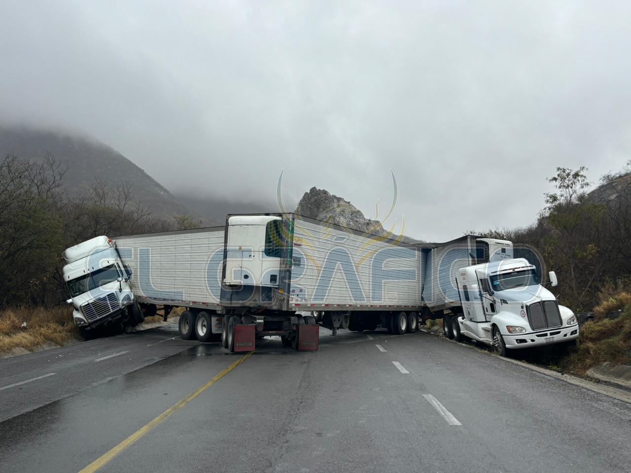 Ciudad Victoria, Tamaulipas.- Derivado de un choque múltiple entre cuatro tráileres registrado en el kilómetro 12 de la carretera estatal 126 en el tramo Rumbo Nuevo, la circulación en ambos sentidos se encuentra cerrada.