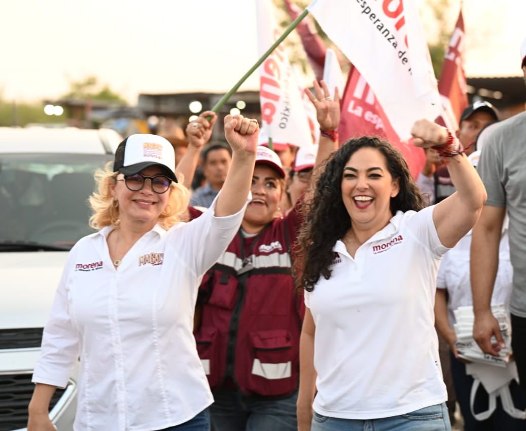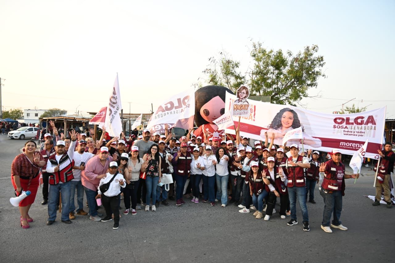 Reynosa.- Clientes y oferentes del tianguis Puerta del Sol en Reynosa, conocieron las propuestas del proyecto de nación de Claudia Sheinbaum en voz de la candidata al Senado por Morena Olga Patricia Sosa Ruíz y la candidata a diputada local Magaly Deándar Robinson, al continuar con sus actividades proselitistas y hacer un llamado al voto masivo a favor de Morena.