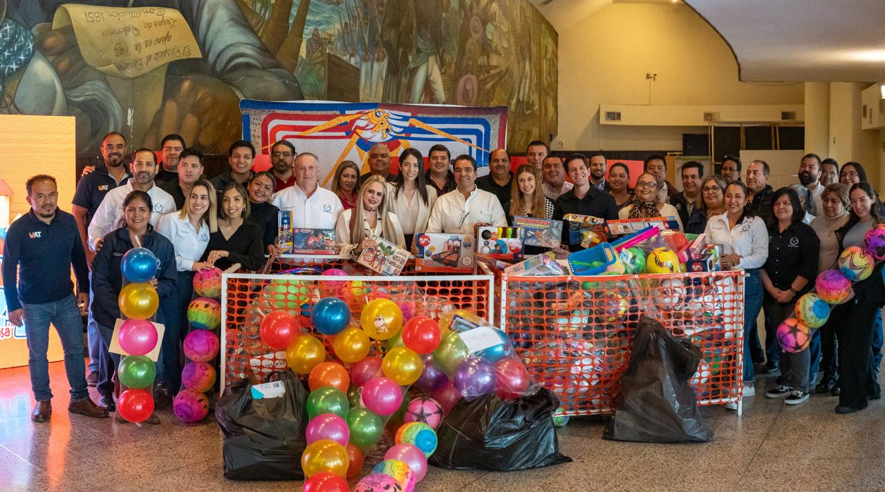 Bajo el lema “Con cada donación transformamos una sonrisa”, la Universidad Autónoma de Tamaulipas (UAT) lleva a cabo la Colecta Universitaria de Juguetes 2024, que ha sumado, en un gesto de solidaridad y compromiso social, la entusiasta participación de la comunidad estudiantil, docente y laboral de esta casa de estudios en la noble causa de brindar alegría a los pequeñitos más necesitados, en el marco de la próxima celebración del Día del Niño y la Niña.