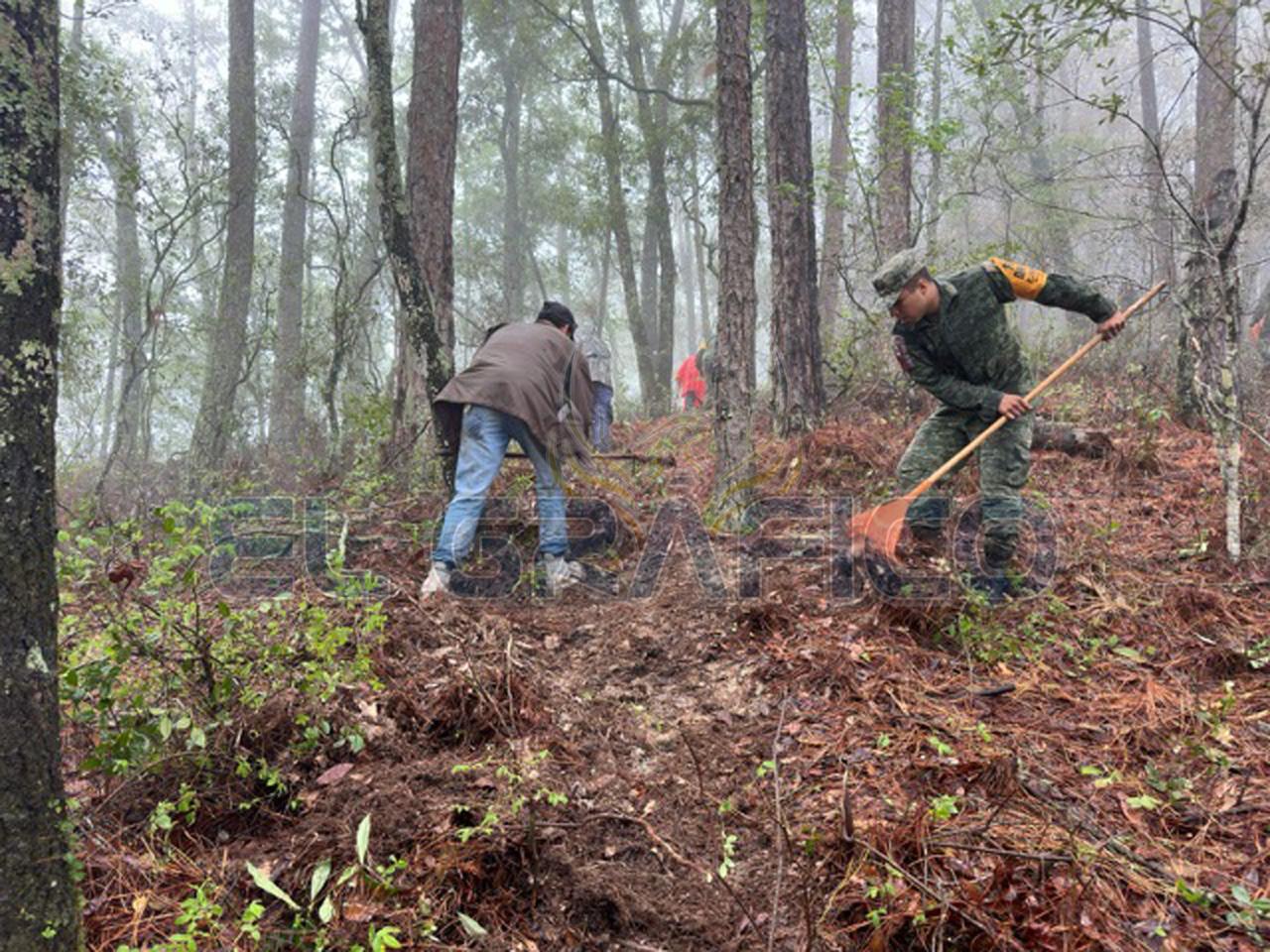 En el combate al siniestro se encuentran participando 21 efectivos y cuatro vehículos del Ejército Mexicano; así como 33 elementos de Protección Civil y siete más de Conafor del citado municipio, con el empleo de diversos equipos y material especializado para el combate de este tipo de incendios.