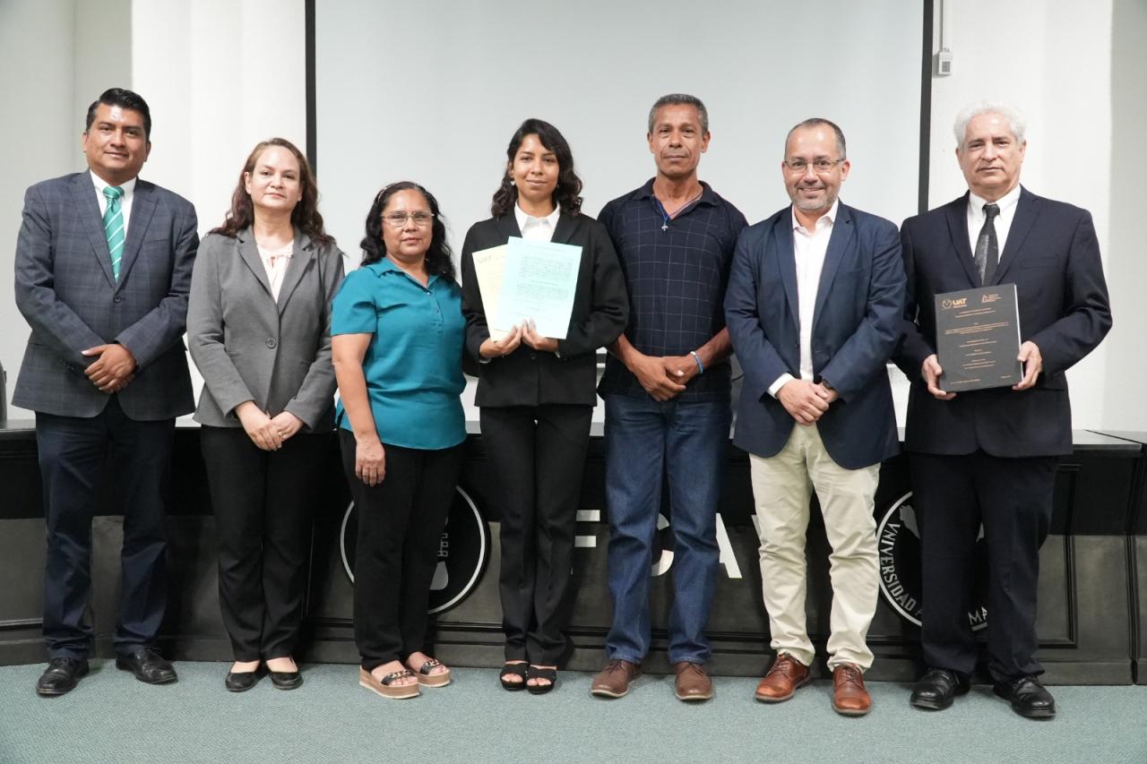 Los sinodales encargados de evaluar el trabajo de Cielo Verónica fueron el Dr. Giuseppe Francisco Falcone Treviño, la Mtra. Zaida Leticia Tinajero Mallozzi y el Dr. Gerardo Haces Atondo. Se contó con la asistencia de familiares de la alumna, del director de la FCAV, Dr. Jesús Gerardo Delgado Rivas, así como docentes, quienes celebraron este logro académico.