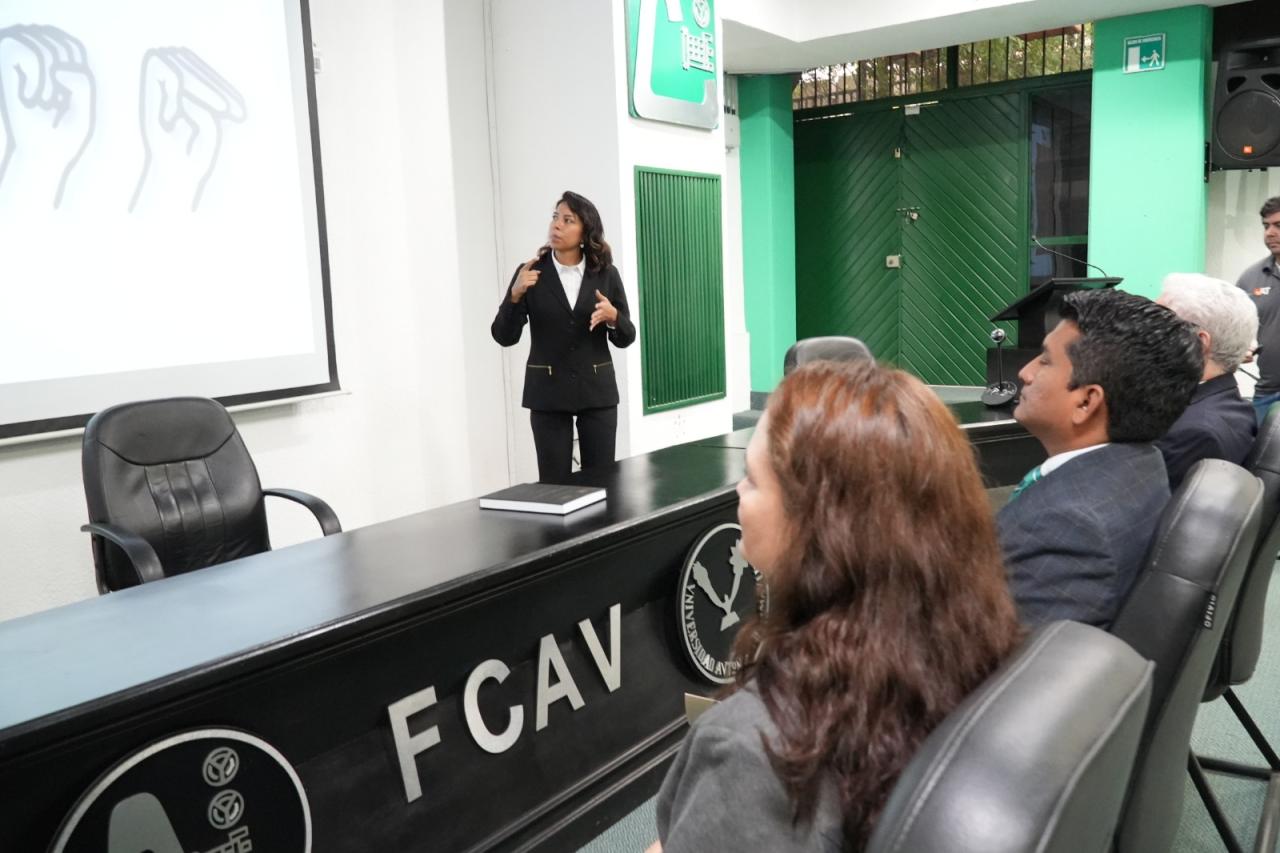 La estudiante Cielo Ibarra presentó este 17 de mayo su Examen General de Egreso de Licenciatura con la tesis titulada Diseño y desarrollo del sistema digital de enseñanza y aprendizaje para las personas sordas en la FCAV, mediante la cual desarrolla una herramienta que facilita la enseñanza y el aprendizaje de personas sordas.