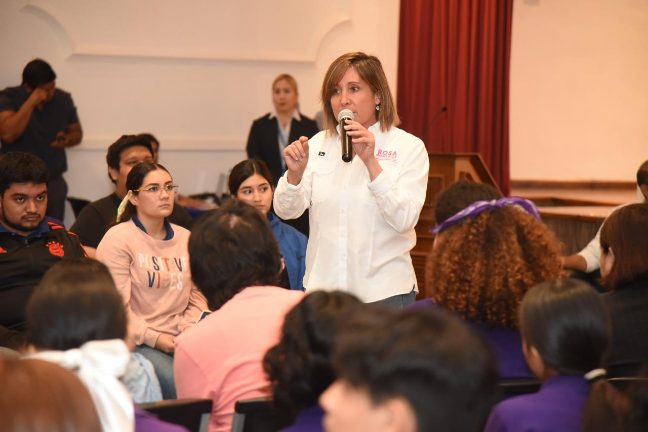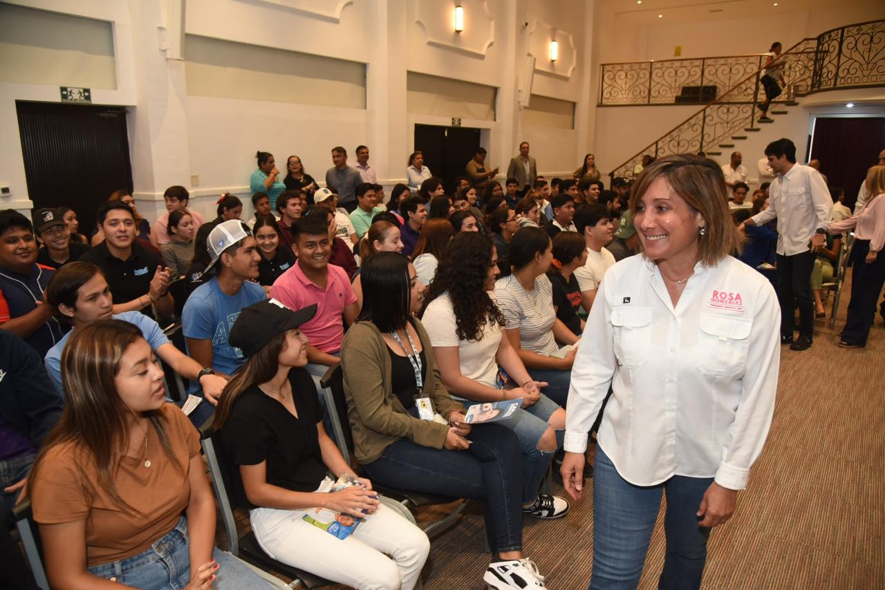 Rosa González Azcárraga, candidata del PAN a la Alcaldía de Tampico sostuvo este día encuentros con jóvenes universitarios y del nivel medio superior, a quienes expuso su propuesta de gobierno basada en la continuidad y en el fortalecimiento de la seguridad y el desarrollo del entorno.