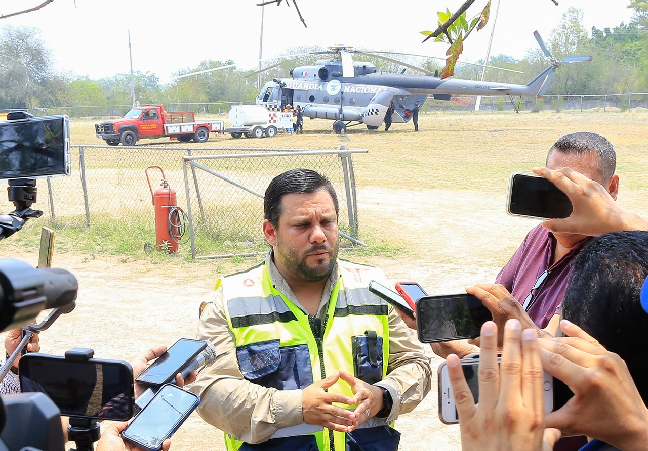 “En este incendio que tenemos aún activo, va un 90% de control y un 80% de liquidación”, informó el coordinador de Protección Civil, al destacar el trabajo que realizan pie a tierra 124 brigadistas de la Comisión Nacional Forestal, Protección Civil del Estado, brigadas de SEDUMA, Desarrollo Rural, además de personal de la Secretaría de la Defensa Nacional, Guardia Estatal y voluntarios.