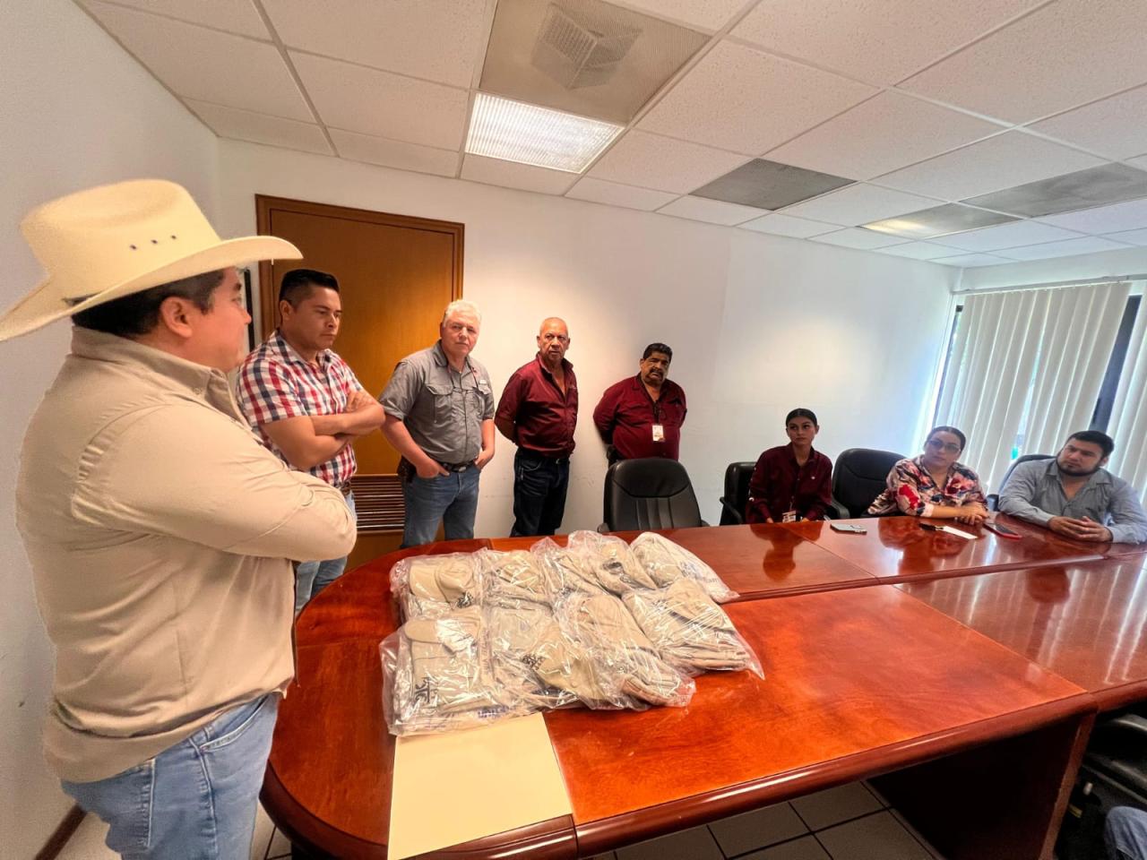 Ciudad Victoria, Tamaulipas.- Por instrucciones del secretario de Desarrollo Rural, Pesca y Acuacultura, Antonio Varela Flores, la Subsecretaría de Fomento Pecuario y Forestal, a cargo de Cuauhtémoc Amaya García, realizó la entrega de uniformes al personal de Inspección y Movilización Fitozoosanitaria de los distintos puntos de inspección del estado de Tamaulipas.