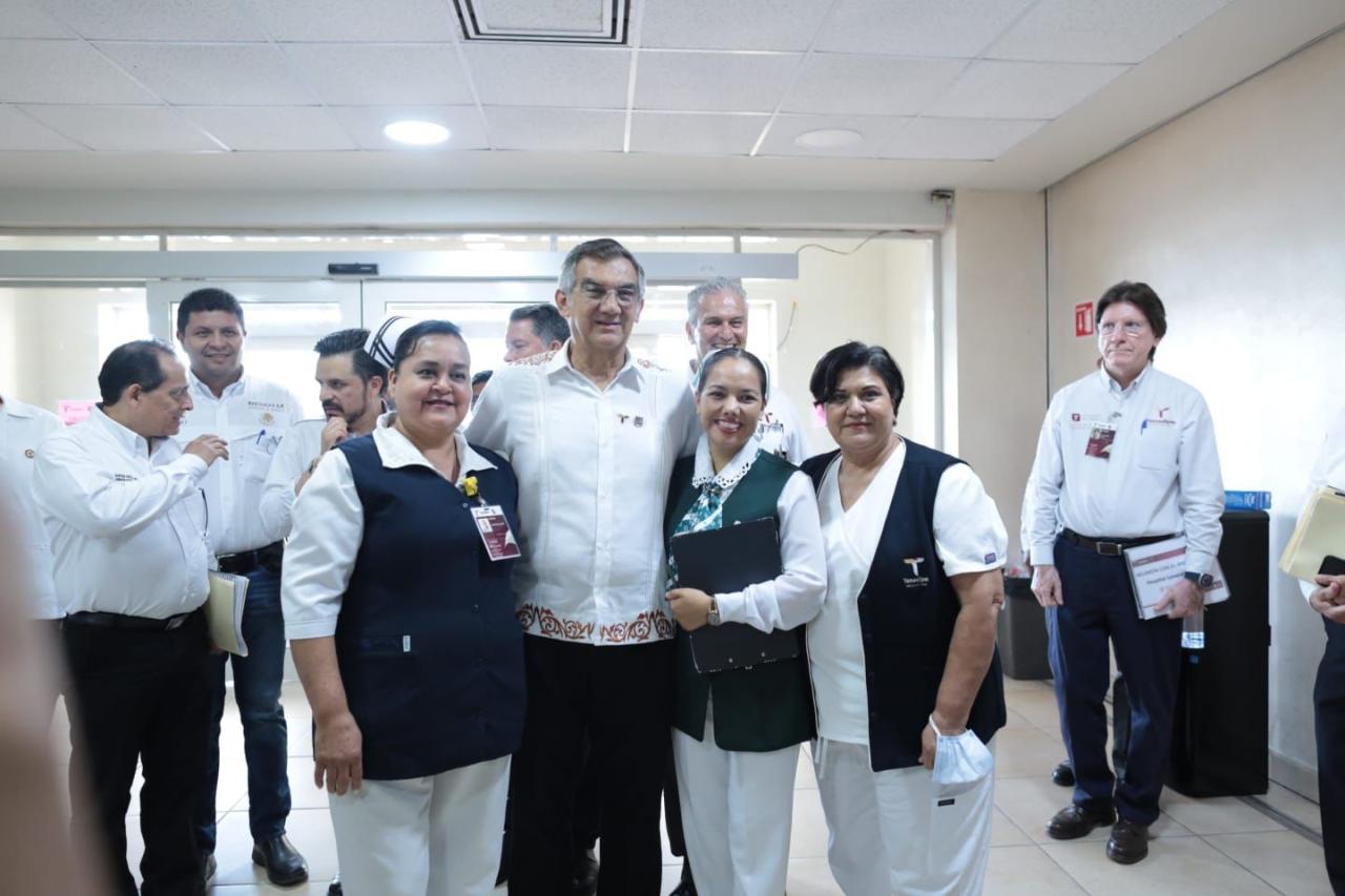 En cuanto a servicios médicos integrales, Tamaulipas registra un avance del 100% de servicios operando en 27 hospitales del estado, como cirugía cardiovascular, dosimetría, hemodiálisis, imagenología y oftalmología, entre otros.