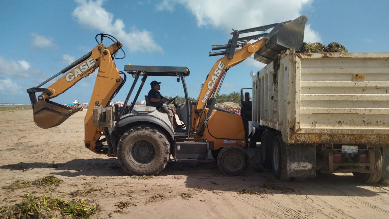 Ciudad Madero, Tamaulipas.- Para contrarrestar la presencia del lirio acuático en la playa Miramar de Ciudad Madero, la Secretaría de Turismo de Tamaulipas dispuso de cuatro camiones y dos retroexcavadoras para la limpieza del lugar.