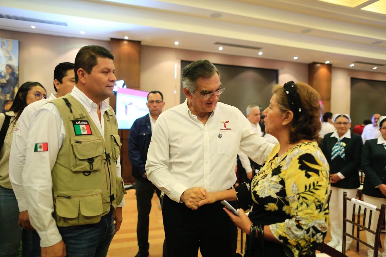 También se dieron cita el secretario de Salud de Tamaulipas, Vicente Joel Hernández Navarro; el subsecretario de Planeación y Calidad, Gabriel De la Garza; la directora de la Jurisdicción Sanitaria Número Uno, Yolanda Reynoso Díaz, y la jefa de Enfermeras IMSS-Bienestar, Juana María Verdines Piña.