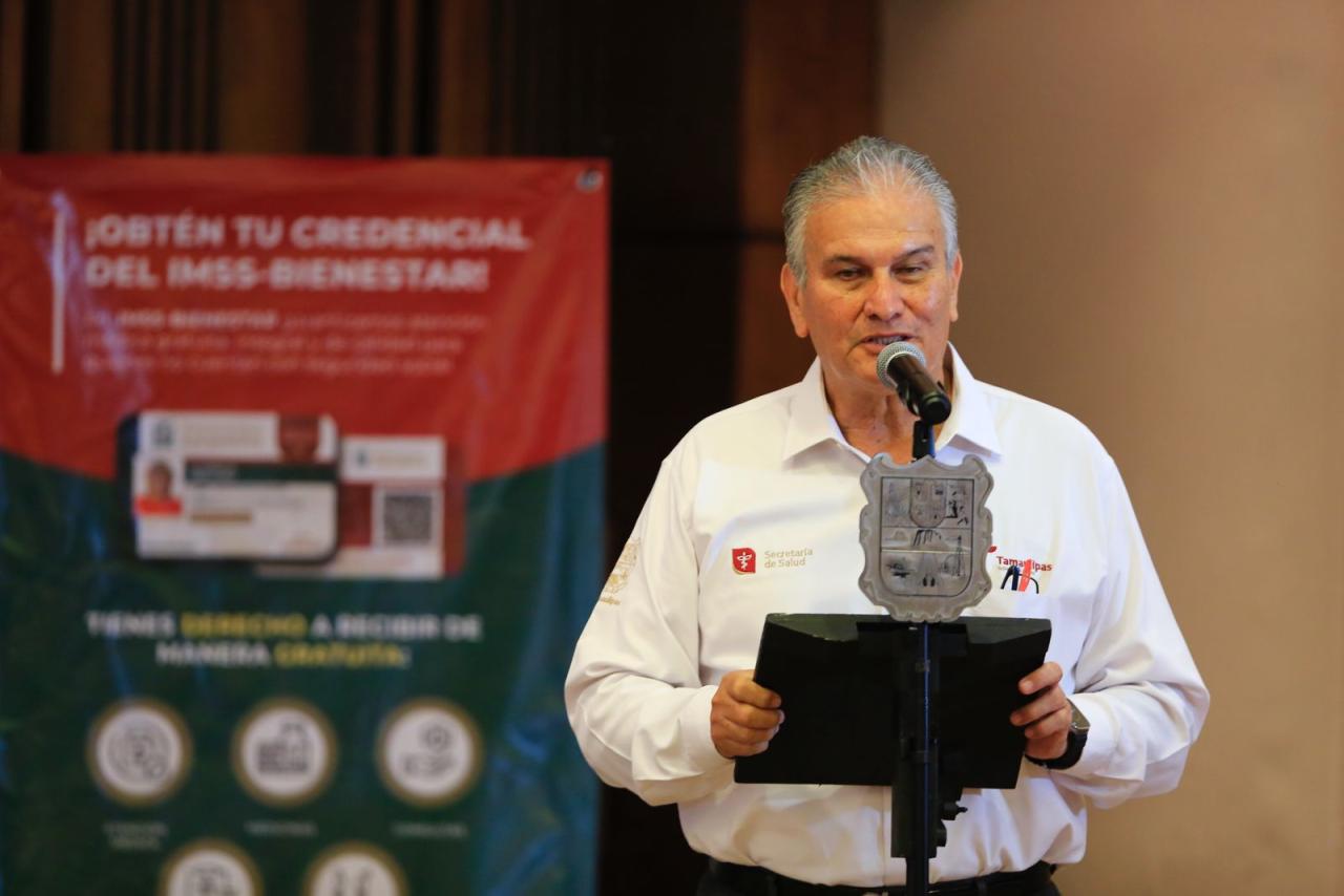Ciudad Victoria, Tamaulipas. – Tamaulipas se sumó al inicio del programa de entrega de credenciales del IMSS-Bienestar, el cual llegará a 1.5 millones de beneficiarios en el estado, en un evento presidido en esta capital por el gobernador Américo Villarreal Anaya, quien destacó que el nuevo modelo de atención a la salud ha destinado una inversión de 3 mil 200 millones de pesos que se están aplicando en nuestra entidad.