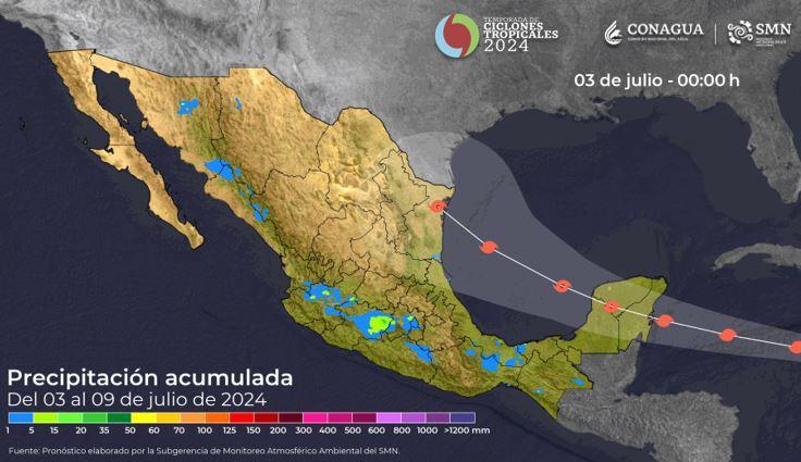 El Servicio Meteorológico Nacional advirtió que para Tamaulipas se esperan lluvias acumuladas en el periodo del día 3 y hasta el 8 de julio de 300 a 350 milímetros.