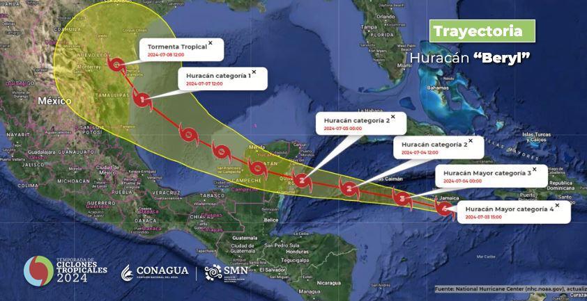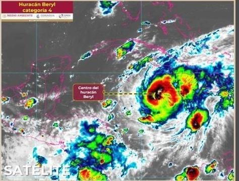 Esta tarde, en conferencia de prensa, la coordinadora del Servicio Meteorológico Nacional, Alejandra Méndez Girón, precisó que durante la tarde noche de este miércoles el huracán Beryl continúa desplazándose como categoría 4 en la escala Saffir-Simpson sobre el Mar Caribe.