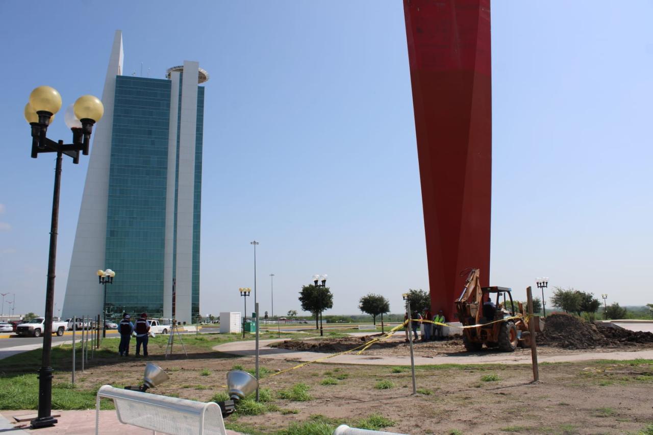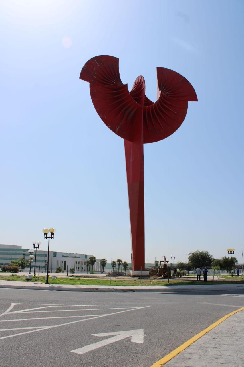 Ciudad Victoria, Tamaulipas. - Como parte fundamental de la identidad de Tamaulipas, el Gobierno del Estado, a través de la Secretaría de Obras Públicas (SOP), trabaja en la preservación del patrimonio cultural rehabilitando monumentos históricos, en este caso, la escultura denominada “Águila del Bicentenario” ubicada en el Centro Gubernamental de la ciudad capital.