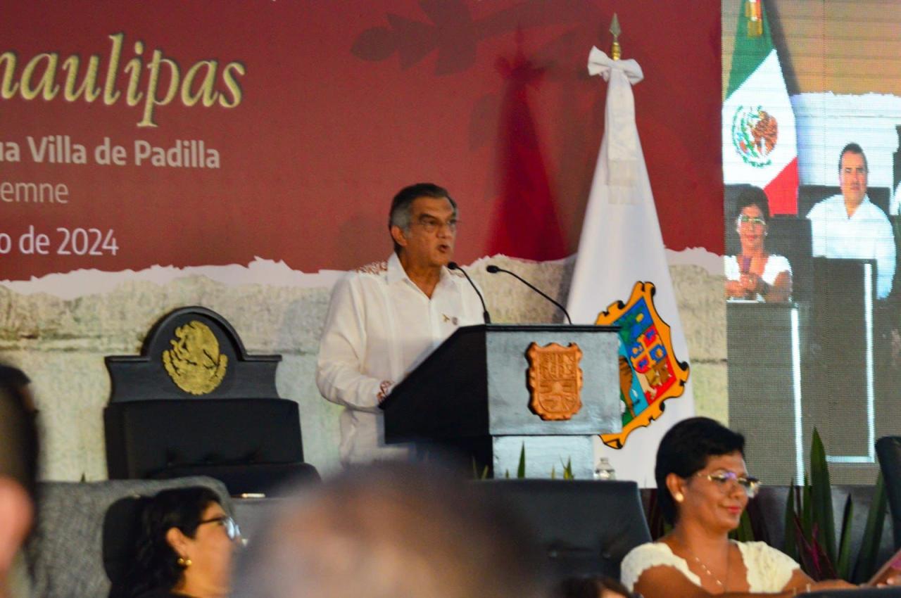 Durante la significativa ceremonia para conmemorar estos hechos históricos, en el marco de la celebración del bicentenario del primer Congreso Constituyente de Tamaulipas, efectuado en la sesión extraordinaria y solemne del Congreso de Tamaulipas, realizada en el histórico Viejo Padilla, y donde develó cinco placas, entre ellas: una, de reconocimiento a las y los pobladores, donde el mandatario estatal reiteró el agradecimiento a quienes aceptaron irse a otro lugar, en beneficio del desarrollo de la zona centro de Tamaulipas.