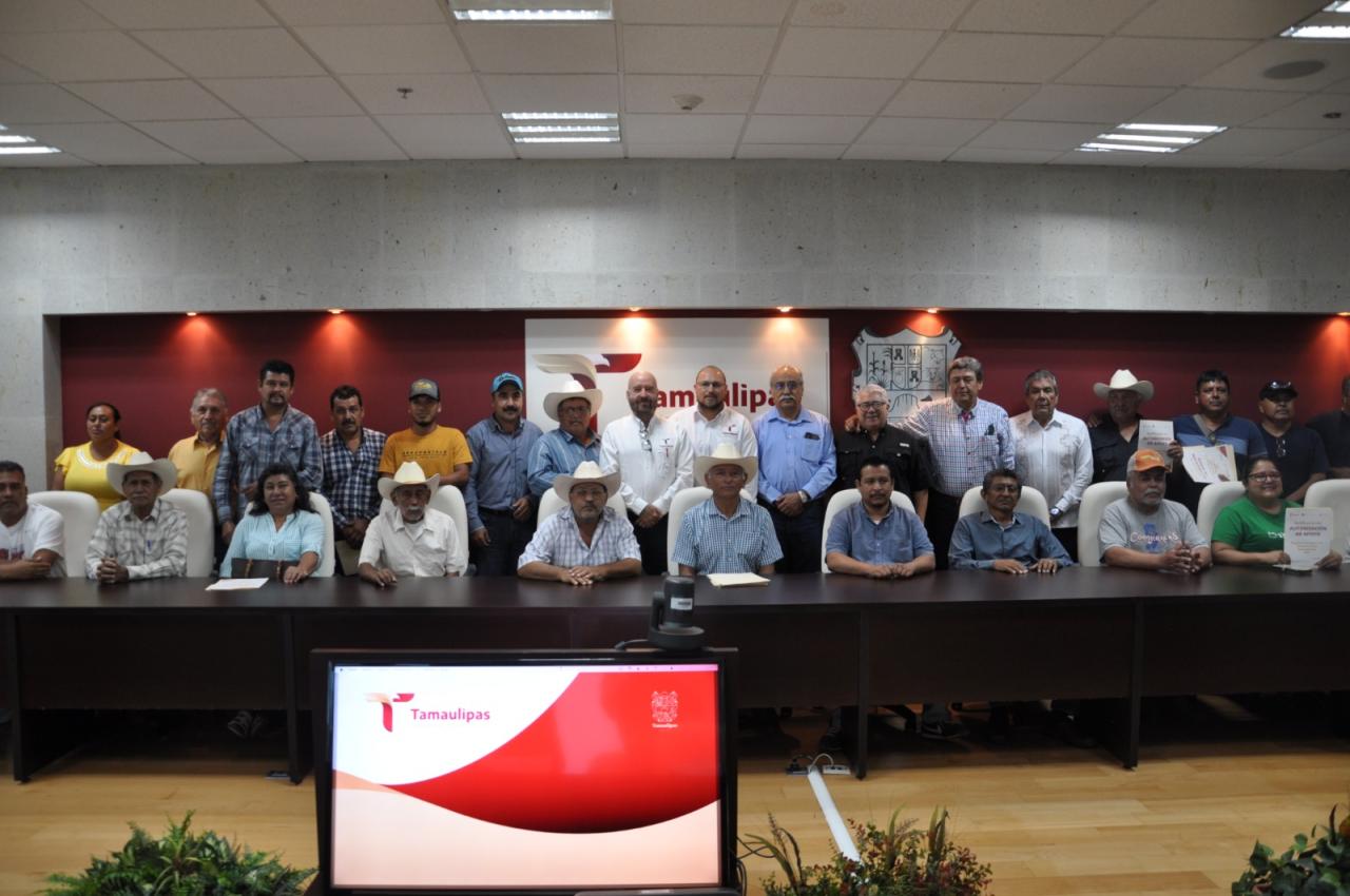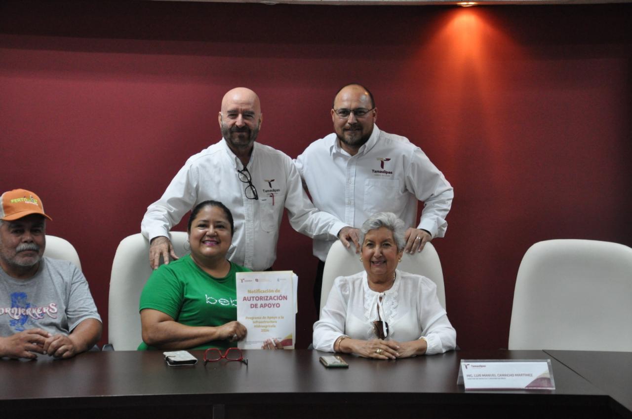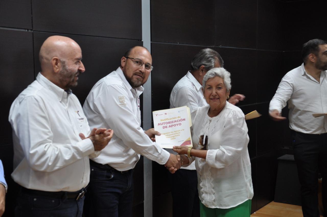 Ciudad Victoria, Tamaulipas.- A través de la Subsecretaría de Infraestructura Hidráulica, el secretario de Recursos Hidráulicos para el Desarrollo Social, Raúl Quiroga Álvarez, junto al secretario general del Gobierno, Héctor Villegas González, y el secretario de Desarrollo Rural, Pesca y Acuacultura, Antonio Varela Flores, entregaron las notificaciones de autorización de apoyos a los representantes del sector social y de pequeña propiedad de la componente Rehabilitación, Tecnificación y Equipamiento de Unidades de Riego del Estado, como parte del Programa de Apoyo a la Infraestructura Hidroagrícola 2024.