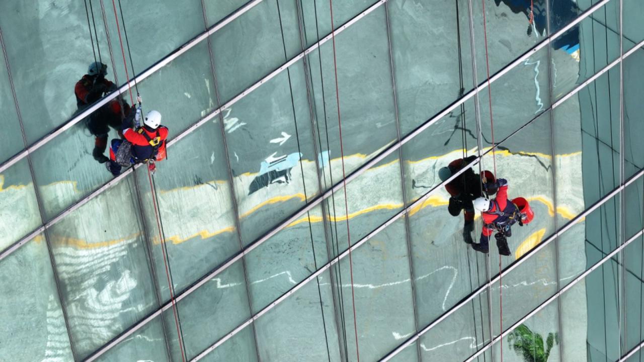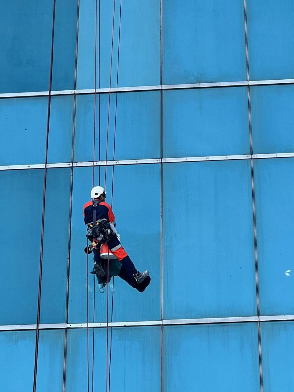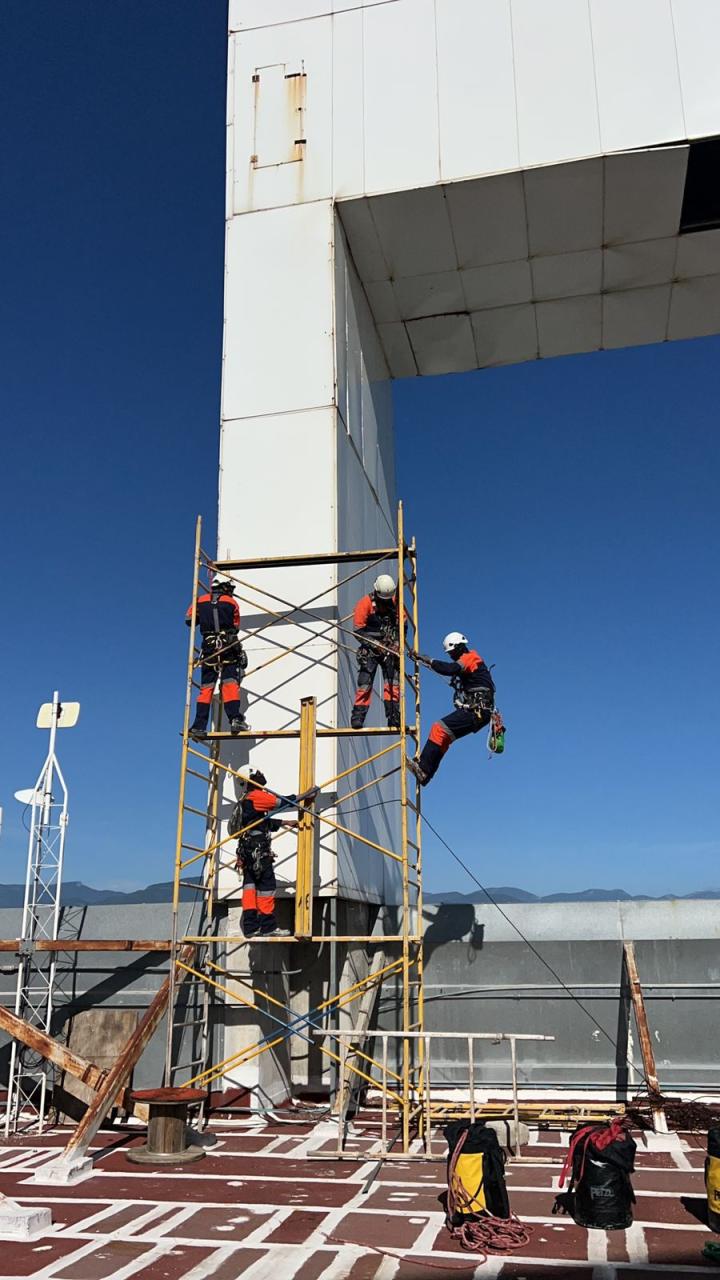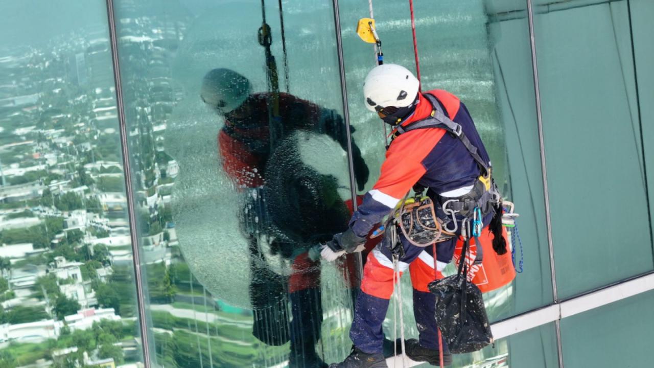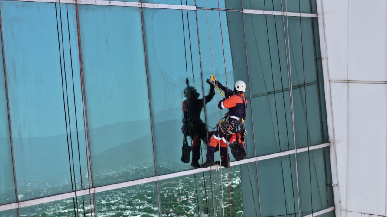 Las cuadrillas de trabajo, encabezadas por José Ángel Sevilla Morales, director general de Servicios, se encargan de hacer el cambio de láminas de la fachada de la Torre Bicentenario, con el fin de evitar daños en la estructura y mejorar la fachada principal del edificio. También se realiza el mantenimiento de los seis elevadores que dan servicio a los más de 2, 250 usuarios que diariamente asisten a esta torre gubernamental.