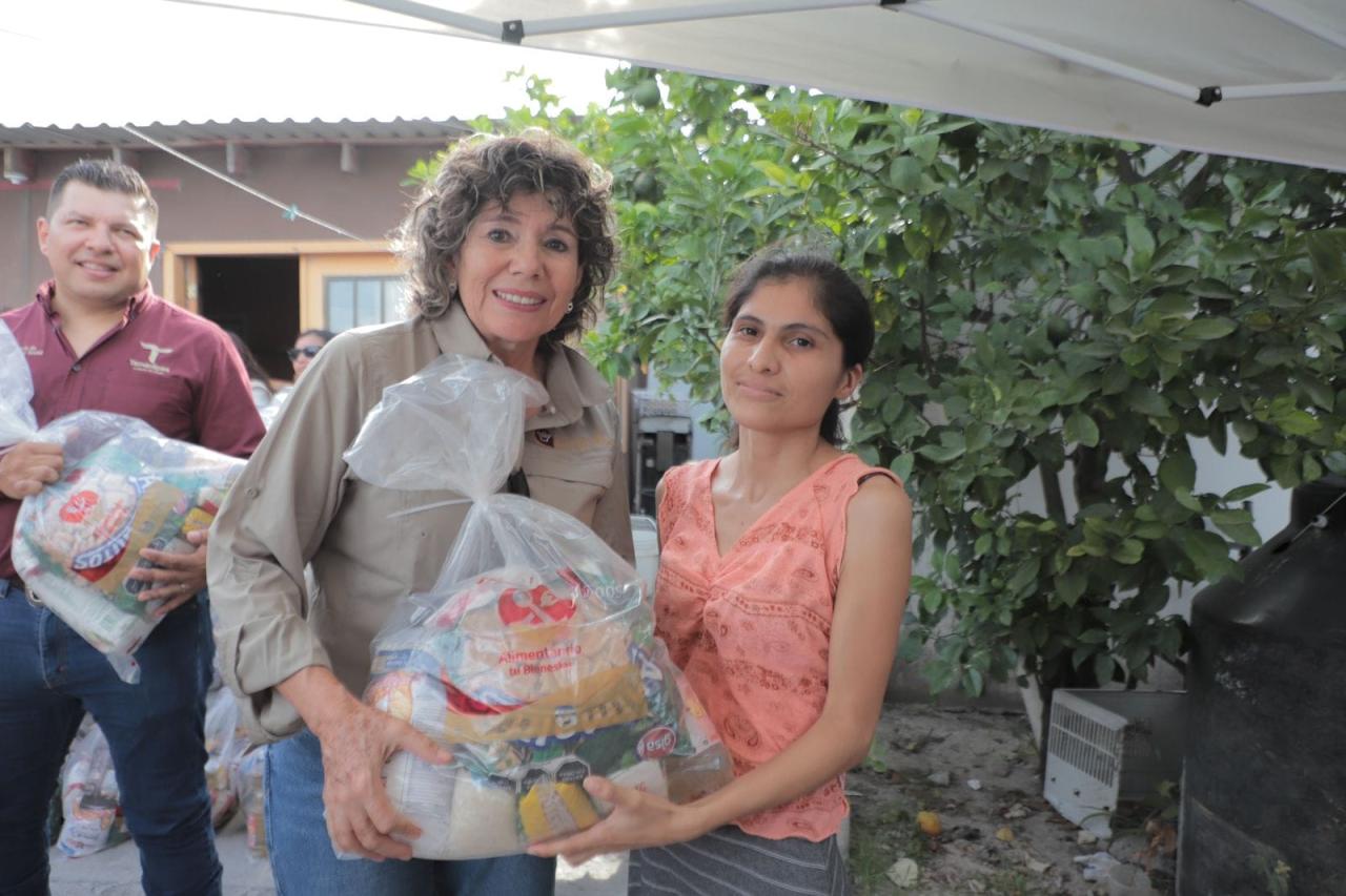 Para finalizar la gira de trabajo, en la colonia Derechos Humanos de Matamoros, la secretaria de Bienestar Social, junto con personal de la delegación de esta dependencia, entregaron paquetes alimentarios a 70 beneficiarios como parte de la tercera ronda de otorgamiento de apoyos.