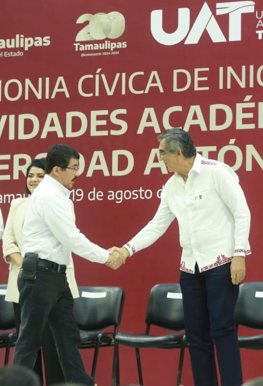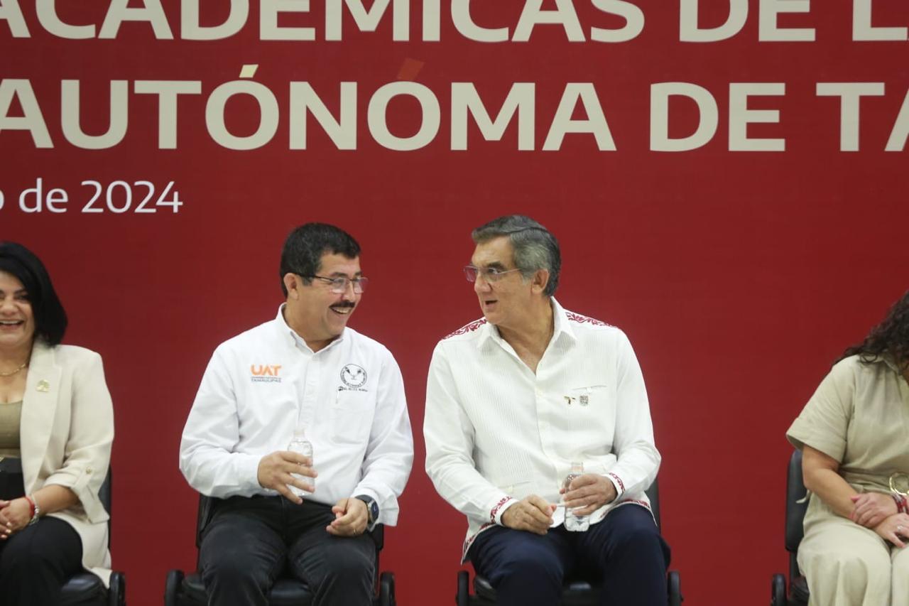 "Señor gobernador, en la UAT estamos comprometidos a seguir contribuyendo al progreso de Tamaulipas, alineándonos con sus proyectos y políticas educativas y, por supuesto, con las políticas que en materia de educación establezca el gobierno federal, que próximamente encabezará la doctora Claudia Sheinbaum Pardo", mencionó.
