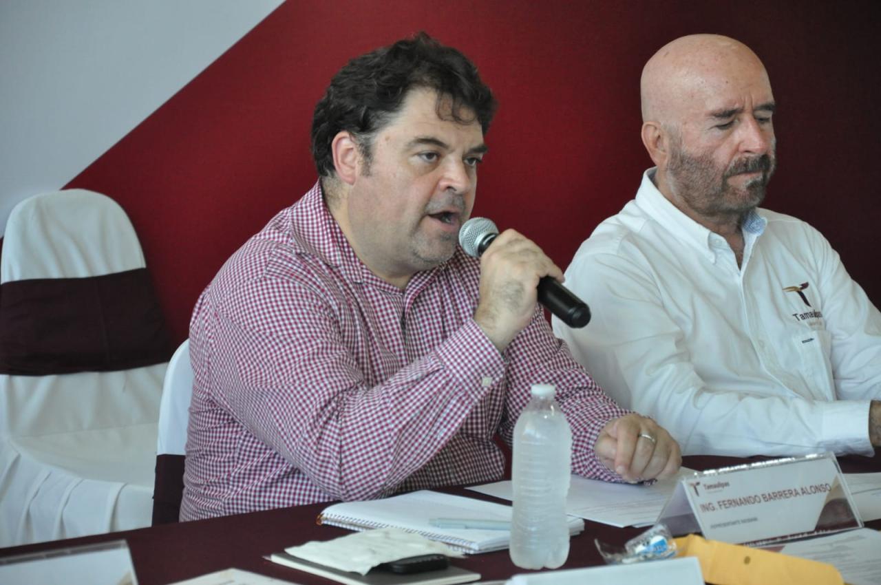 Nuevo Laredo, Tamaulipas. - El secretario de Recursos Hidráulicos para el Desarrollo Social en Tamaulipas, Raúl Quiroga Álvarez, sostuvo una reunión con el representante del Banco Nacional de Desarrollo de América del Norte (NADBank), Fernando Barrera Alonso, el representante legal y director general de ALITEC, Francisco Ramón Tapia Mansilla y los gerentes de los diferentes organismos operadores del agua que se ubican dentro de la franja de 300 kilómetros de la frontera del Estado de Tamaulipas.