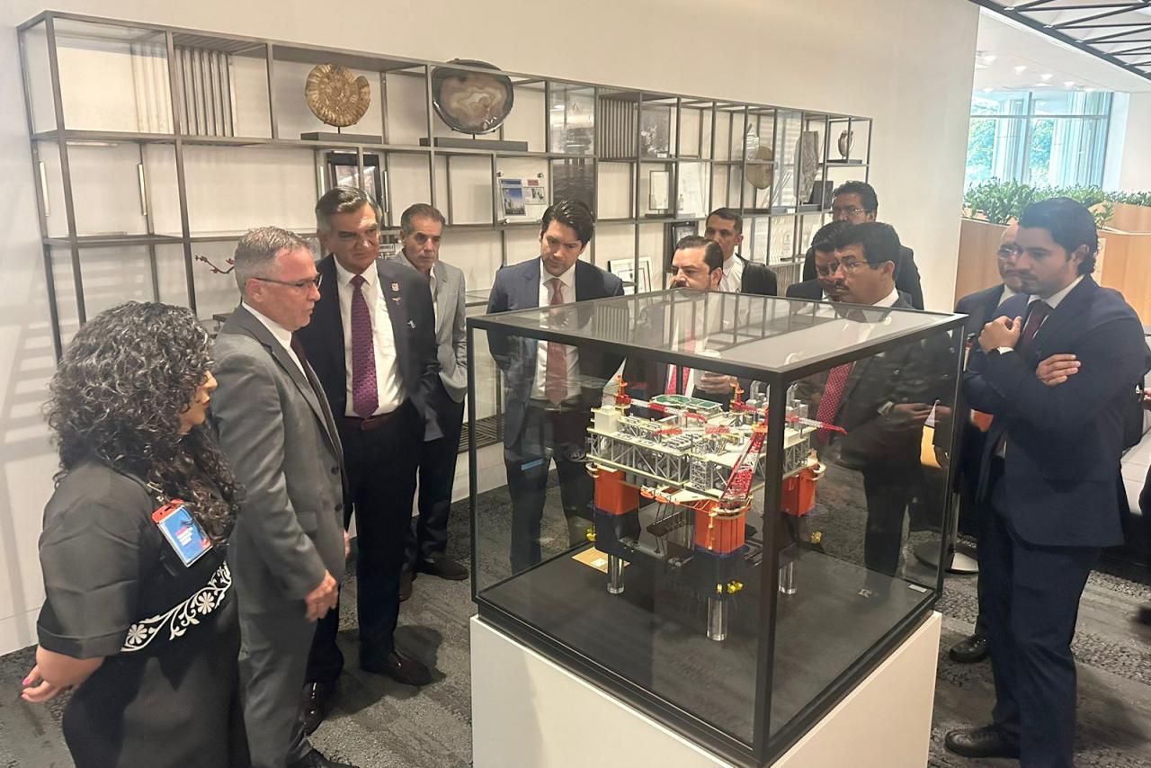 Los directivos de Woodside Energy Daniel Kalms, vicepresidente ejecutivo y jefe de la Oficina de Operaciones Internacionales, y Stephen Drouaud, vicepresidente del proyecto TRION, dieron la bienvenida a la comitiva tamaulipeca encabezada por el doctor Américo Villarreal.