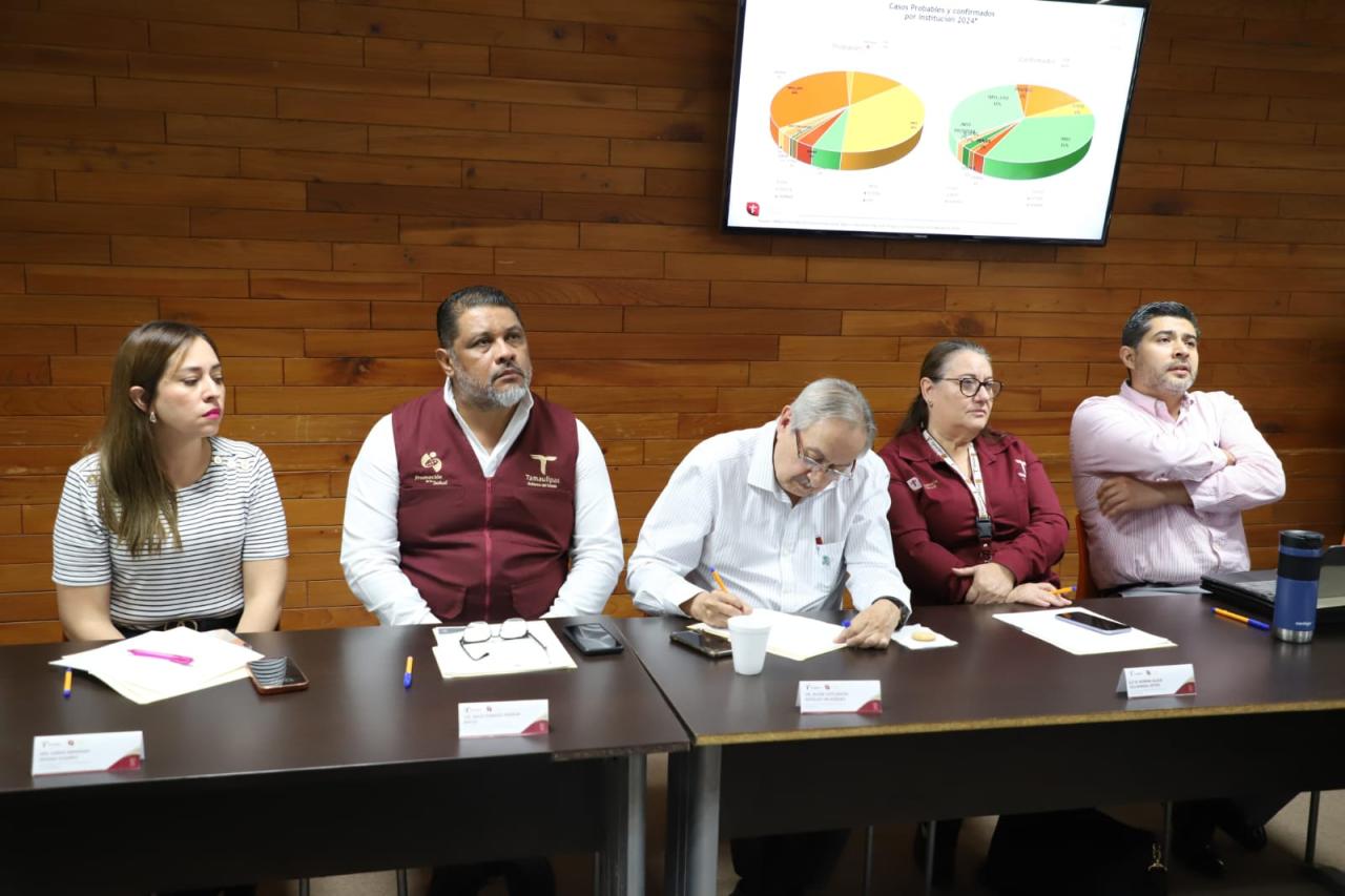 En la reunión se presentaron los casos que a la fecha se han registrado en la entidad, los cuales suman 444 confirmados por laboratorio y se distribuyen en los municipios de Tampico con 99, Madero 63, Altamira 63, Victoria 62, Matamoros 66 y el municipio de Reynosa registra 31 pacientes, el resto de los casos se distribuyen en los municipios de Aldama, Padilla, Soto la Marina, Jaumave, González, Mante, Nuevo Laredo, Río Bravo, San Fernando, Xicoténcatl, Valle Hermosos, Güémez, Nuevo Morelos y Bustamante.