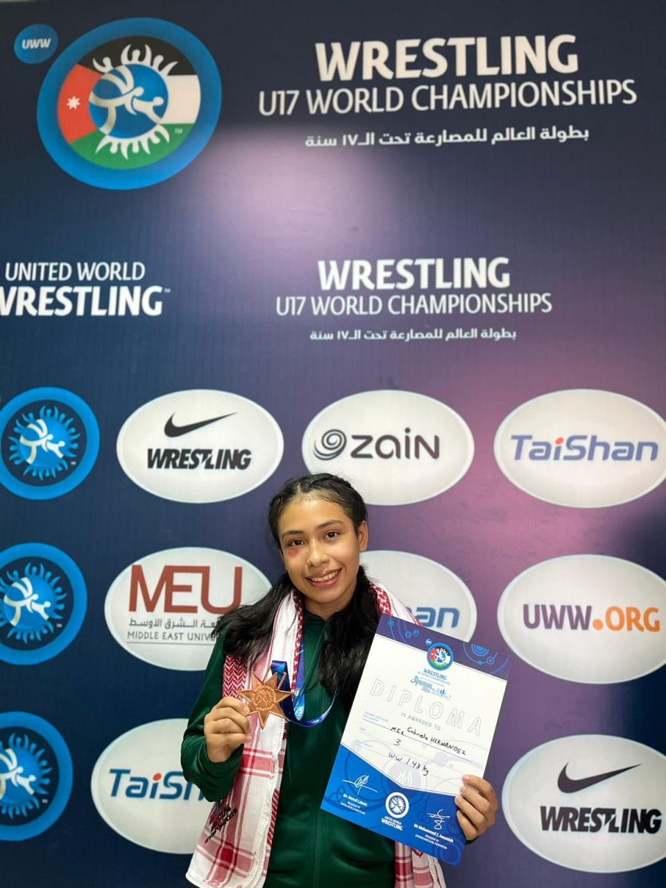 Ciudad Victoria, Tamaulipas.-Gabriela Palacios Hernández, oriunda de Matamoros, Tamaulipas, logró una histórica medalla de bronce en la Copa del Mundo Sub-17 de Luchas Asociadas, celebrada en Jordania.