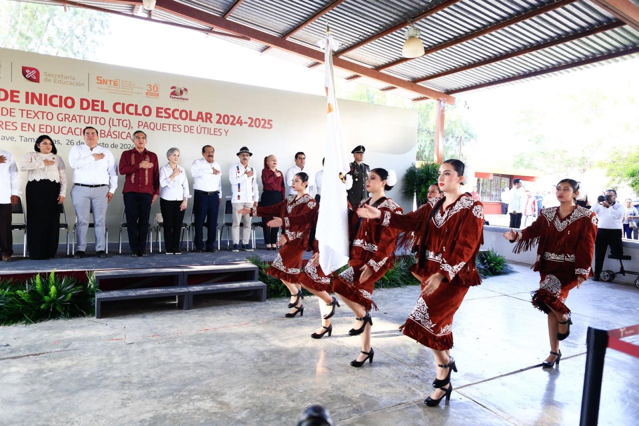 Jaumave, Tamaulipas. - En el Gobierno de la Transformación en Tamaulipas, lo más importante es la educación de las niñas, niños y jóvenes, afirmó el gobernador Américo Villarreal Anaya al dar el banderazo de inicio del nuevo ciclo escolar 2024-2025, en el que se han invertido 340 millones de pesos en paquetes de uniformes y útiles escolares.