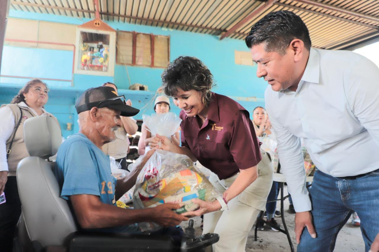 Soto la Marina, Tamaulipas.- Como parte del compromiso del Gobierno de Tamaulipas, encabezado por Américo Villarreal Anaya, de estar cerca de las familias que más lo necesitan, la secretaria de Bienestar Social, Silvia Casas González, entregó paquetes alimentarios en el ejido Tampiquito, del municipio de Soto la Marina.