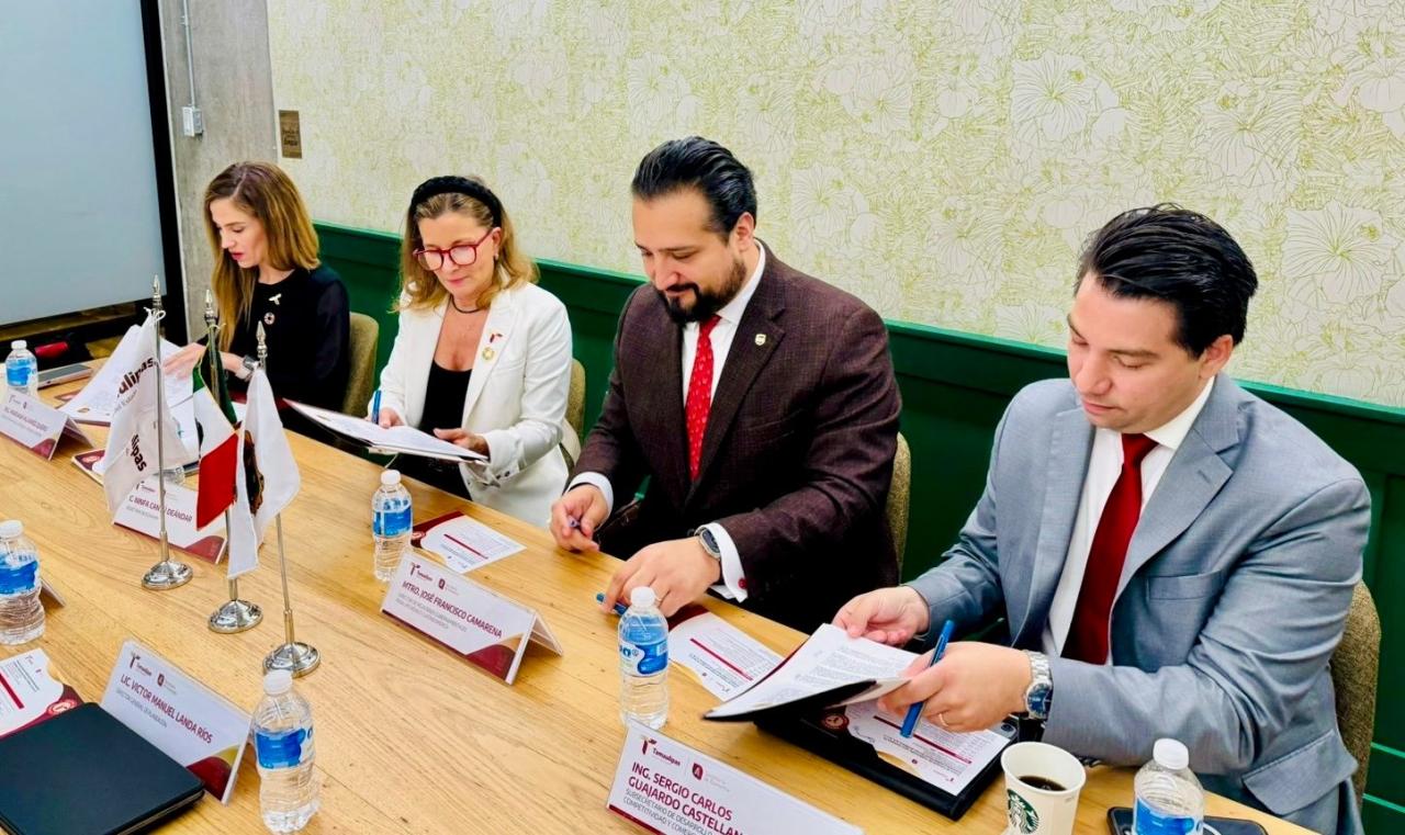 Ciudad de México.- Para apoyar la competitividad logística de las empresas tamaulipecas y su ingreso a mercados nacionales de internacionales, la secretaria de Economía, Ninfa Cantú Deándar encabezó la firma de un convenio de colaboración con la empresa global United Parcel Service, UPS.