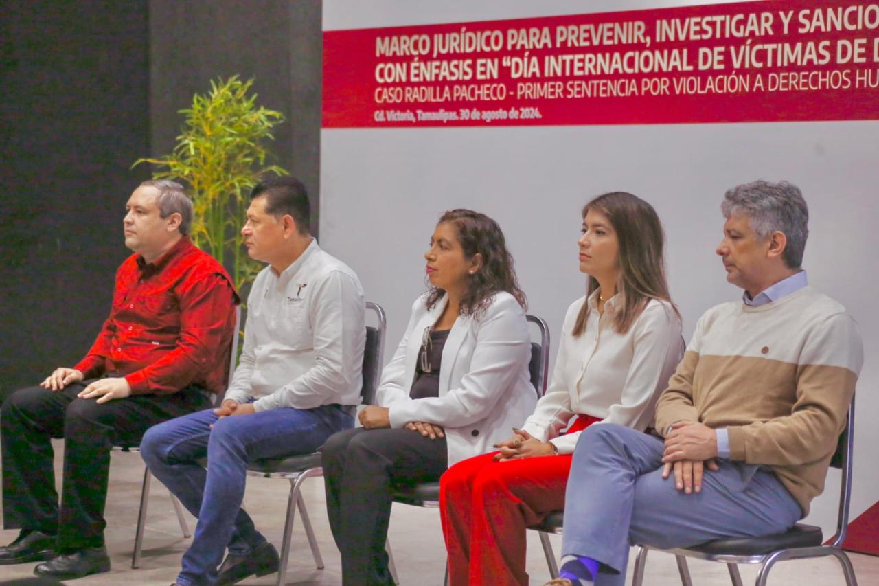 El evento contó con la participación de distinguidas autoridades, quienes formaron parte del presídium, como Esteban Etienne Ruiz, subsecretario de Derechos Humanos y Articulación Social; Tomás Gloria Requena, subsecretario de Gobierno, en representación de Héctor Joel Villegas González, secretario general de Gobierno; Sandra de la Rosa Guerrero, en representación de María Taide Garza Guerra, presidenta de la Comisión de Derechos Humanos del Estado de Tamaulipas; Mariela Estefanía Zurita Lugo, directora general del Instituto de Defensoría Pública del Estado de Tamaulipas, así como importantes autoridades y cerca de 90 personas servidoras públicas, entre las que se incluyen enlaces de derechos humanos de las diferentes secretarías, dependencias, organismos y municipios de Tamaulipas.